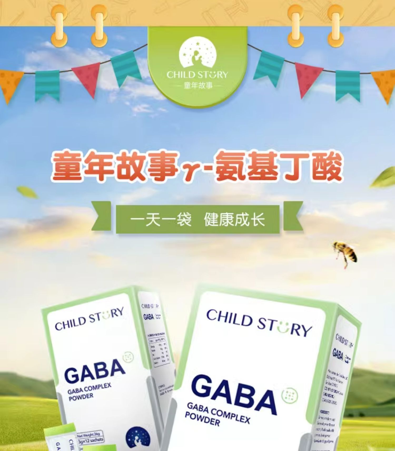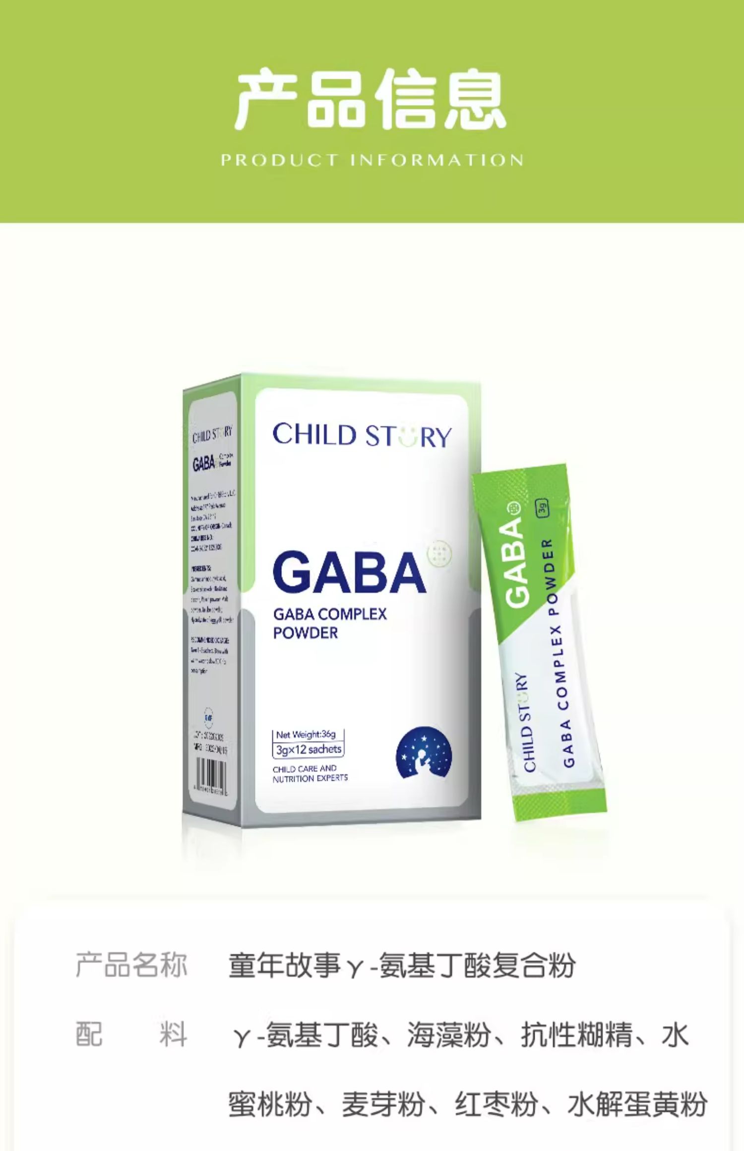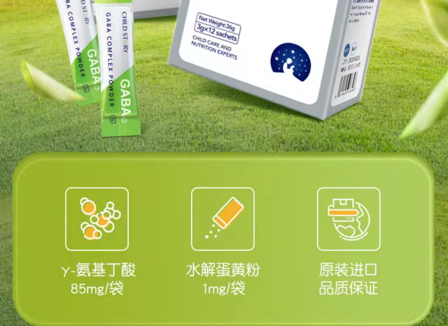 9楼母婴生活馆 4盒送1盒 童年故事γ-氨基丁酸粉剂儿童青少年GABA含钙12袋 吊牌价:298元 活动价:298元1盒 1192元4盒