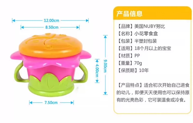 nuby努比儿童卡通3D餐具宝宝可爱创意造型小怪兽零食盒小花糖果盒