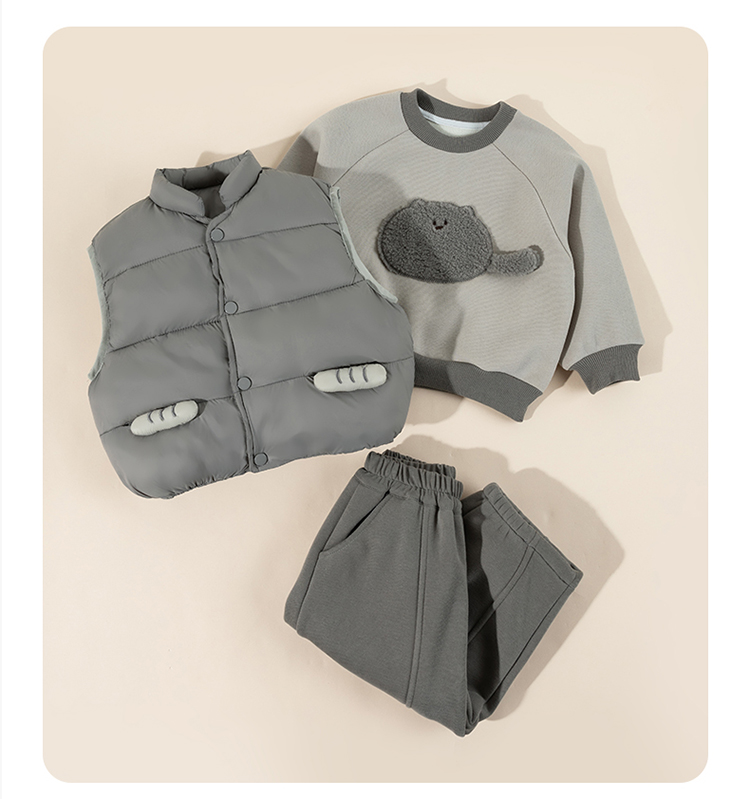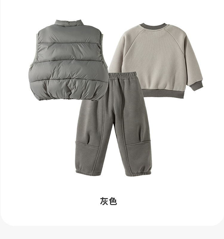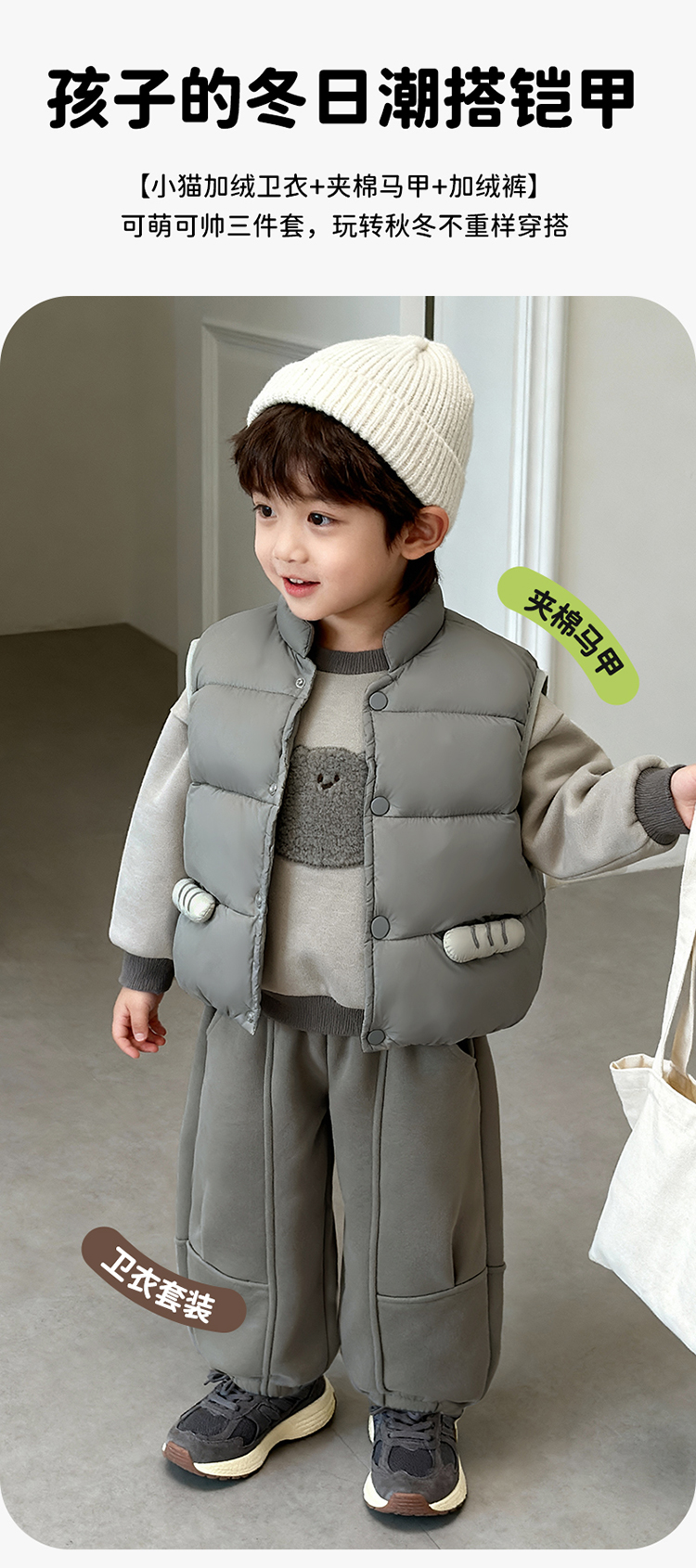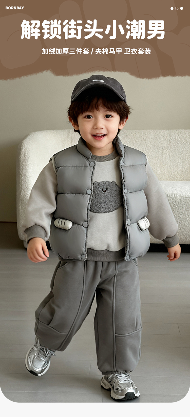 贝贝怡童装儿童秋冬套装三件套夹棉马甲保暖卫衣长裤新款男童冬装ZB4ET018