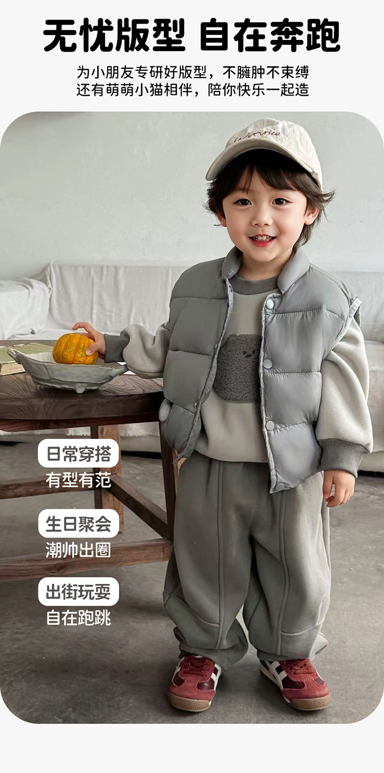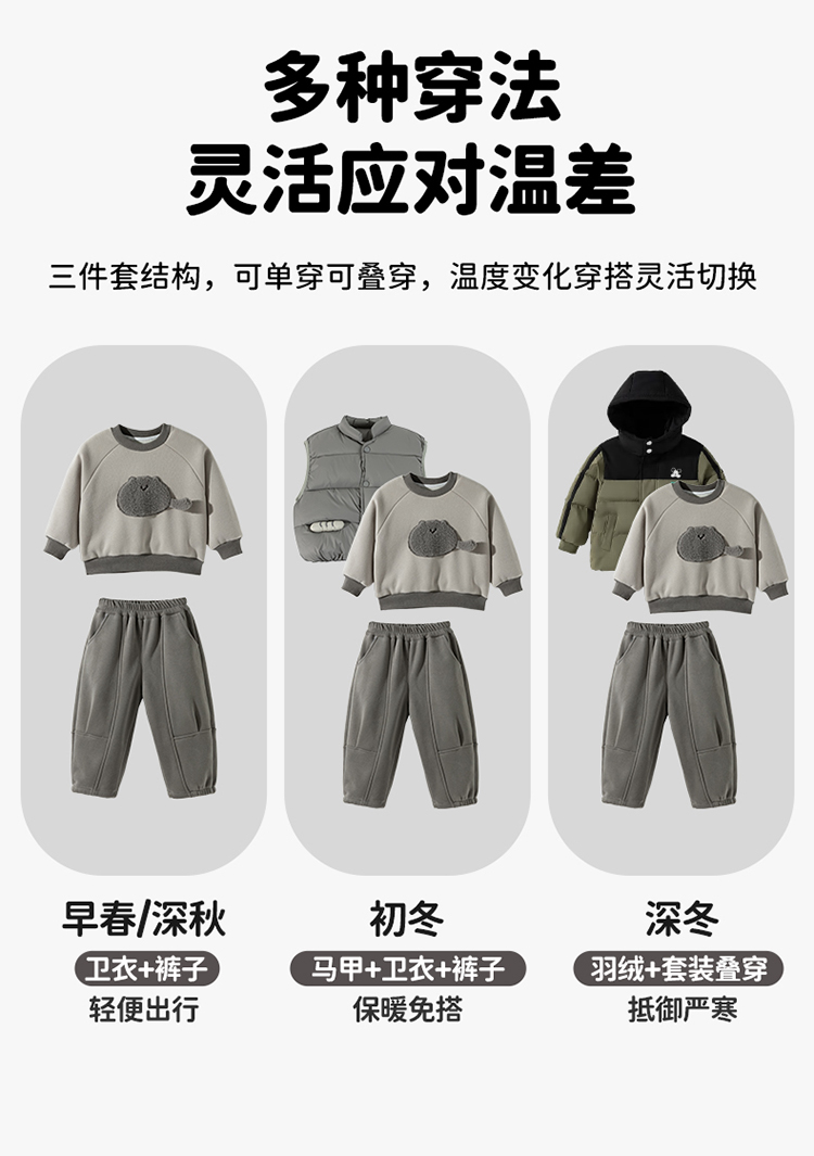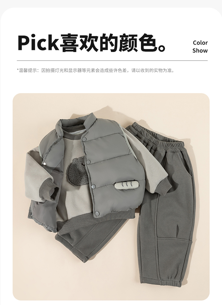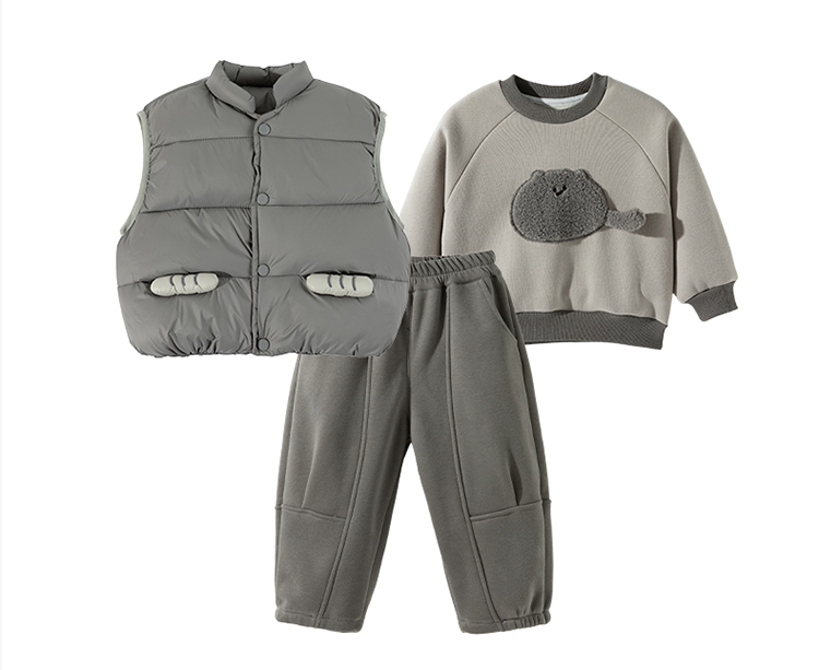 贝贝怡童装儿童秋冬套装三件套夹棉马甲保暖卫衣长裤新款男童冬装ZB4ET018