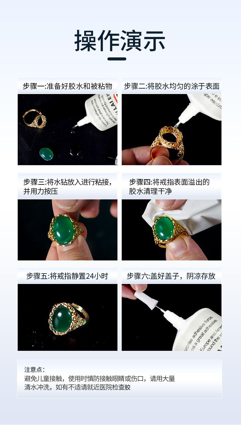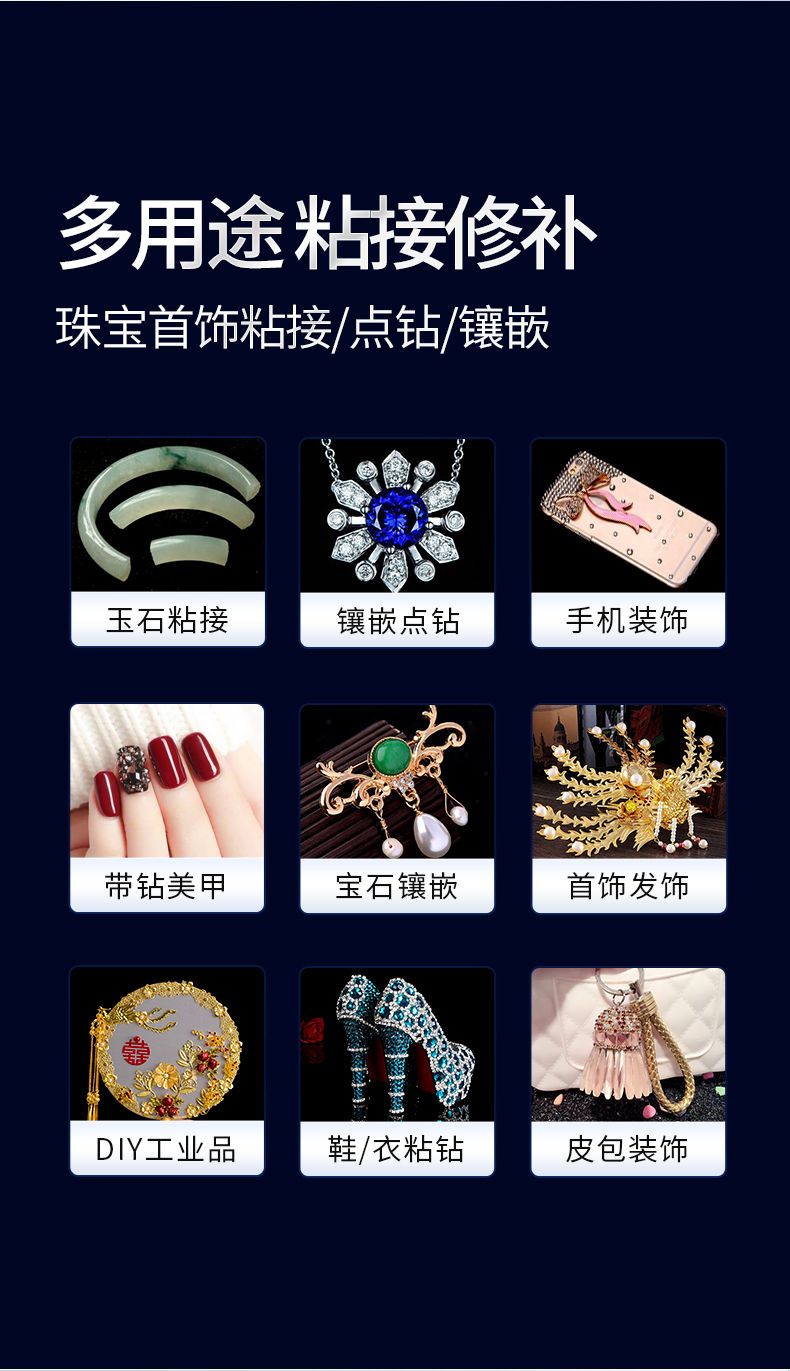 珠宝胶水专用镶嵌粘首饰珍珠耳环蜜蜡琥珀黏玉石翡翠宝石戒指胶水