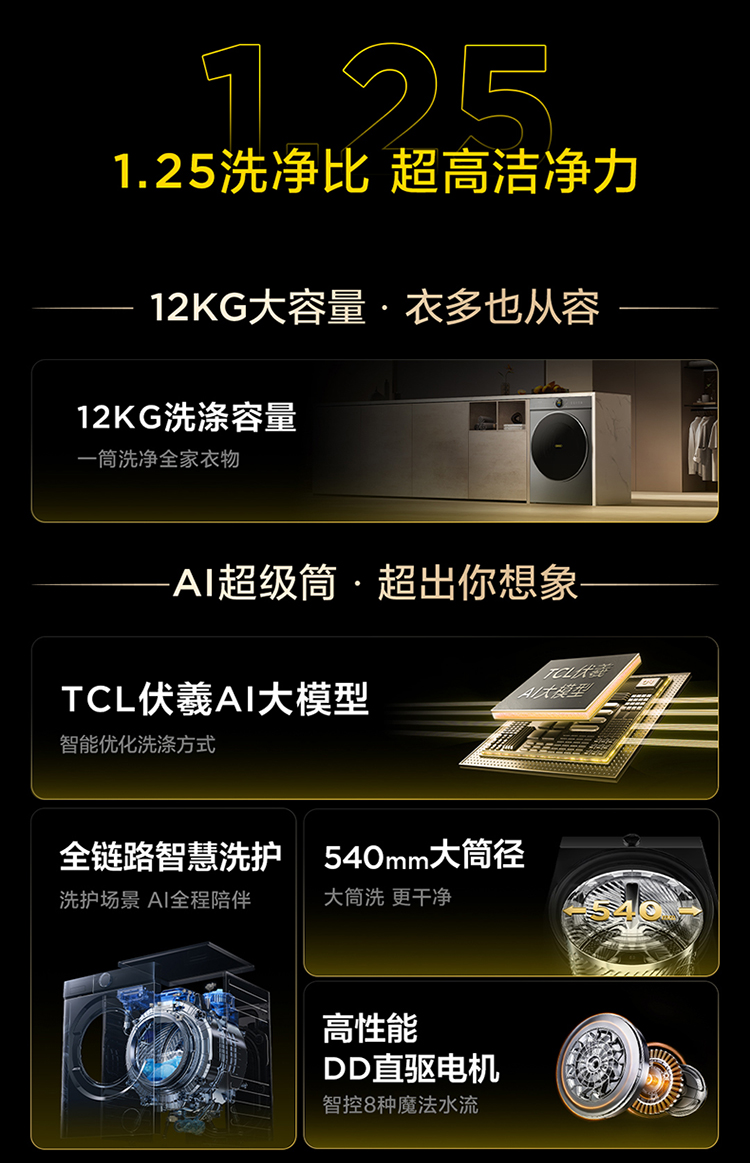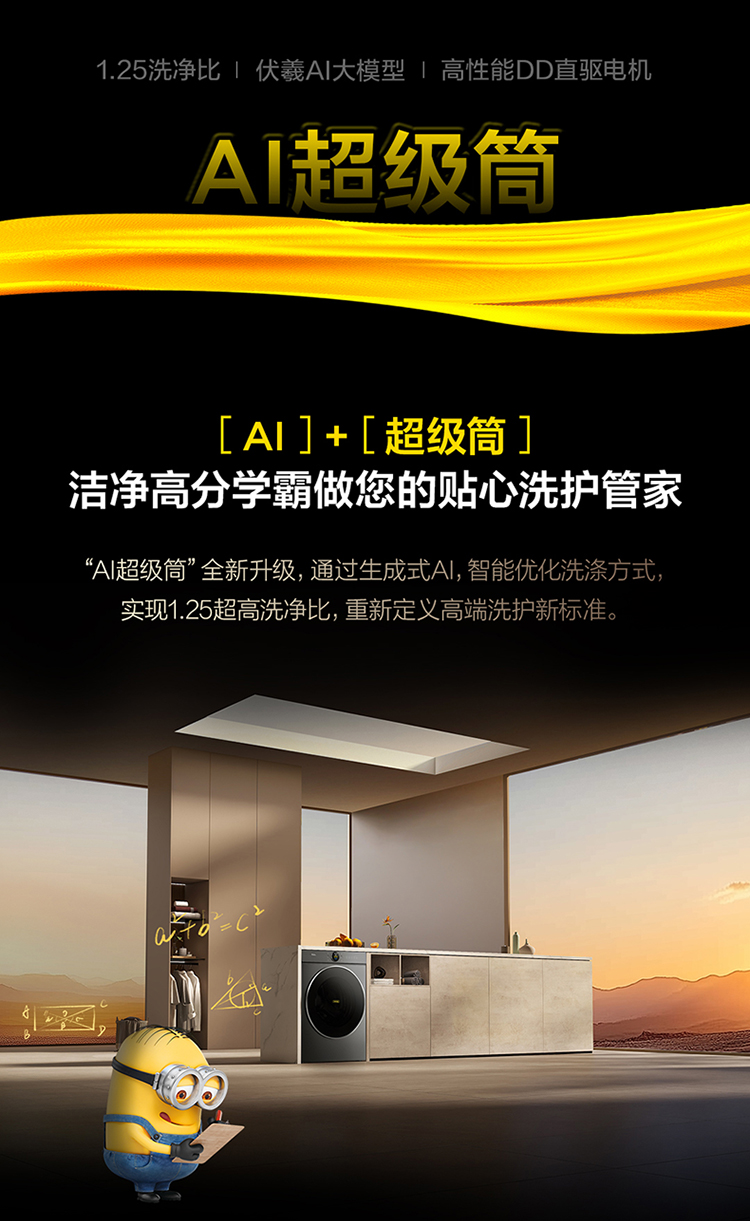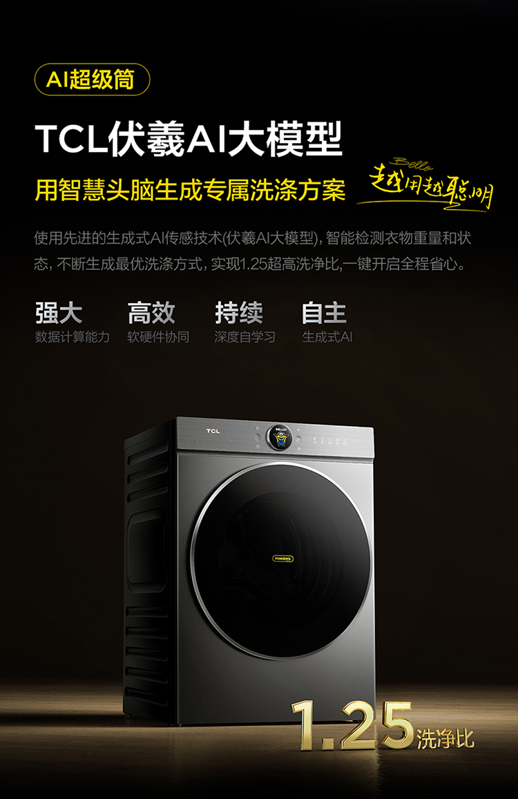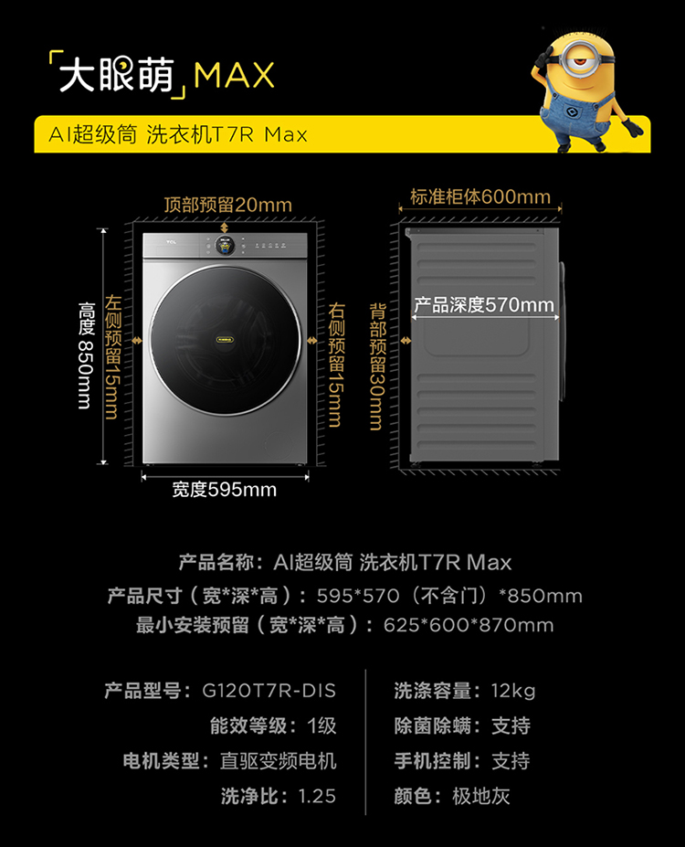【新品上市】TCL小黄人·大眼萌AI超级筒T7R MAX 12公斤DD直驱变频滚筒 G120T7R-DIS