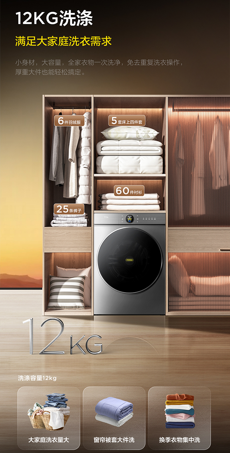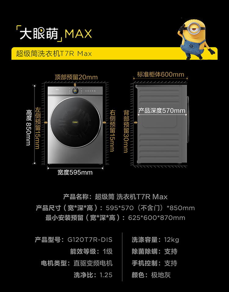 TCL小黄人·大眼萌超级筒T7R MAX 12公斤DD直驱变频滚筒 G120T7R-DIS