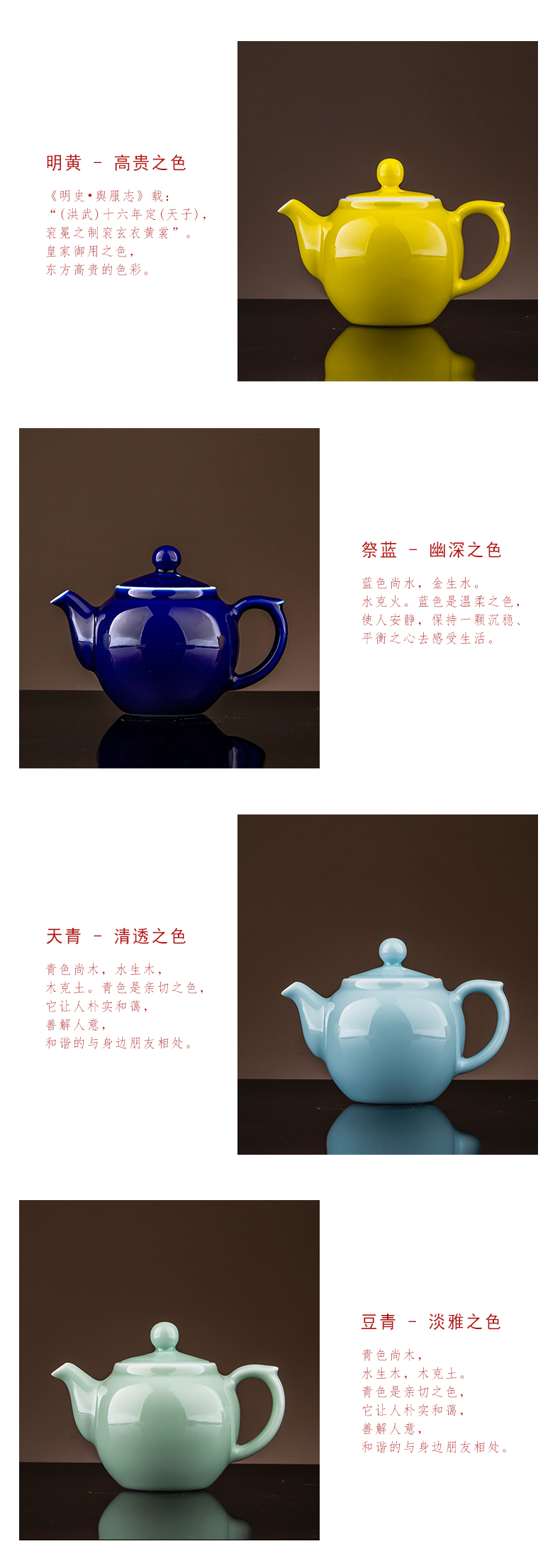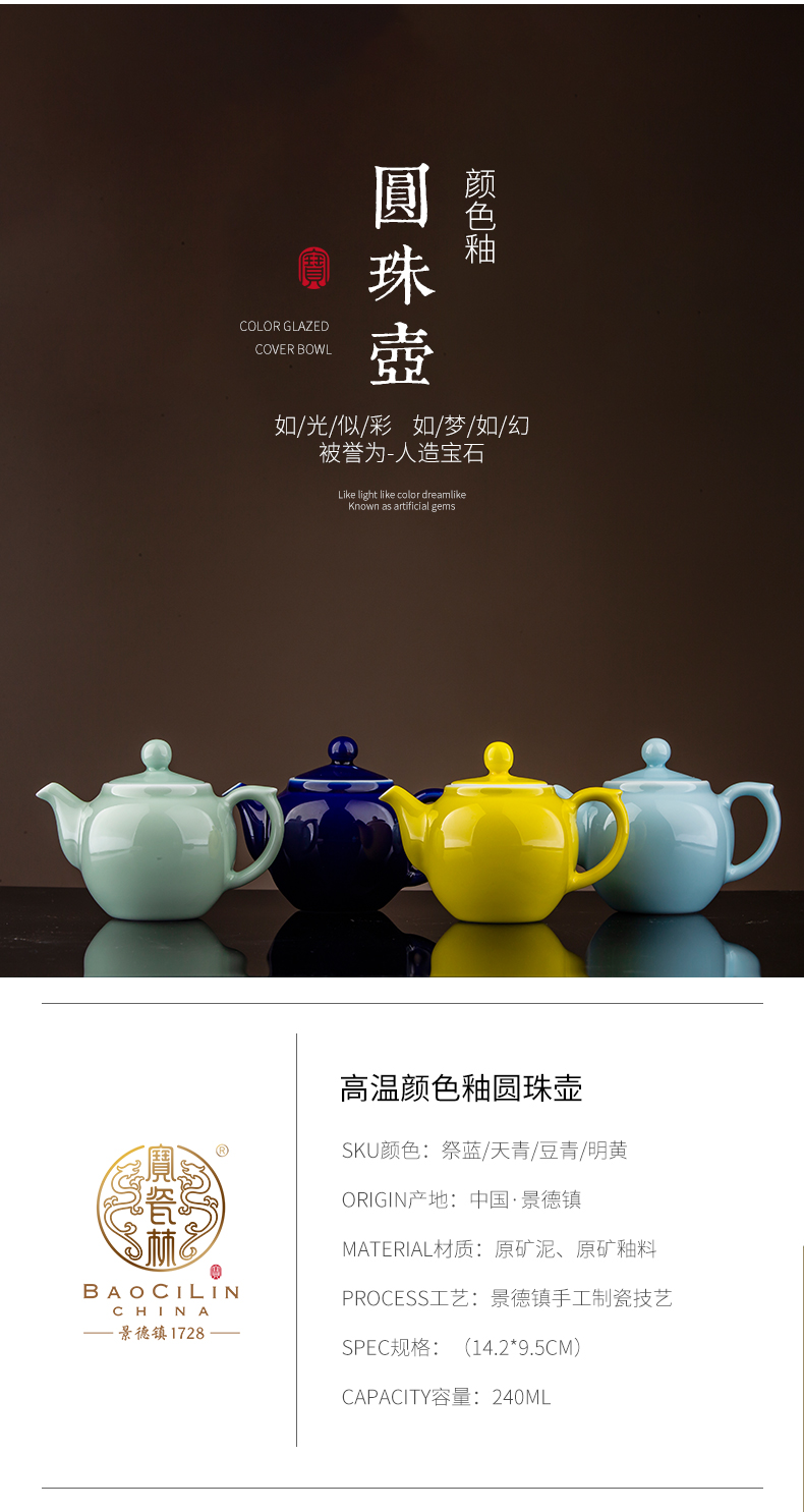 【宝瓷林】颜色釉单壶 天青 豆青 明黄 紫金 祭蓝 祭红圆珠壶