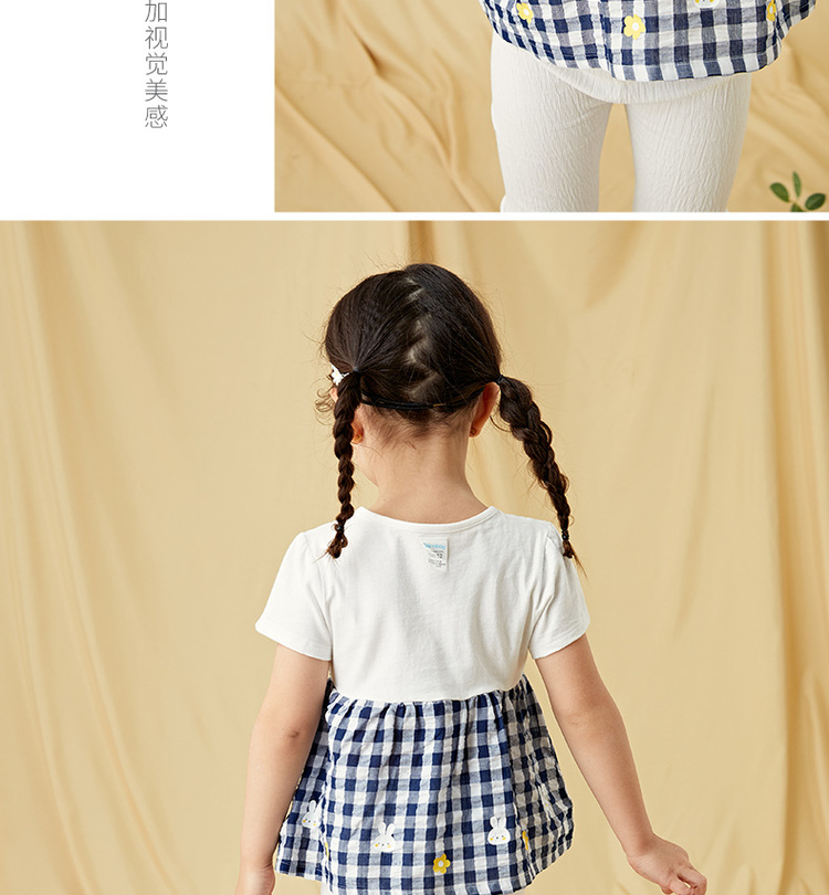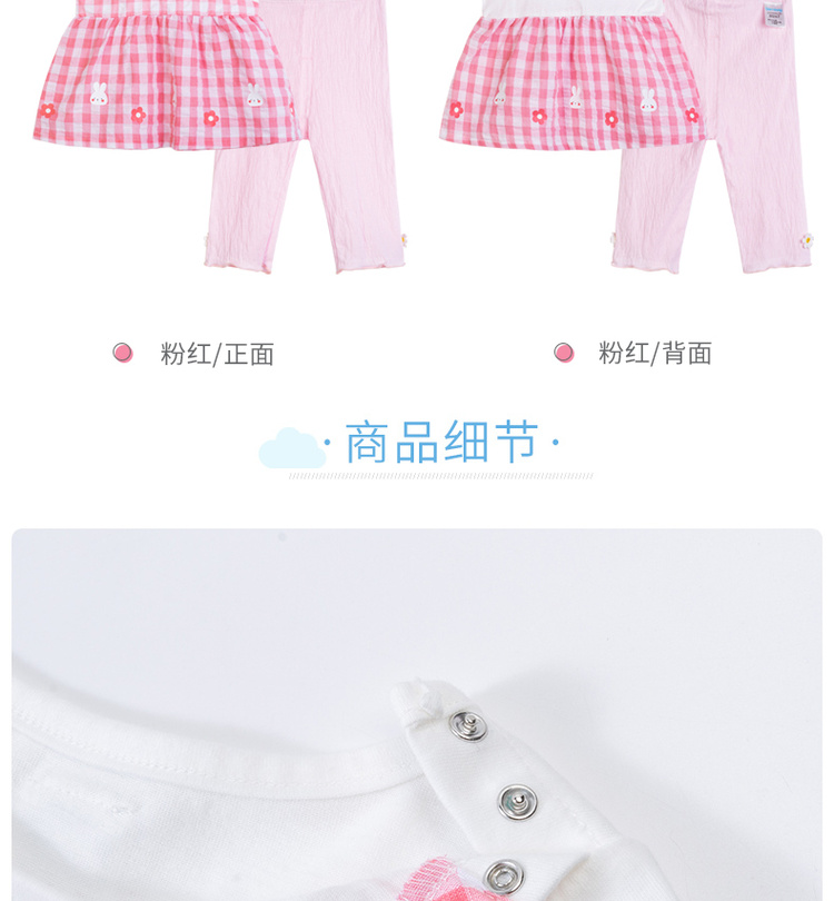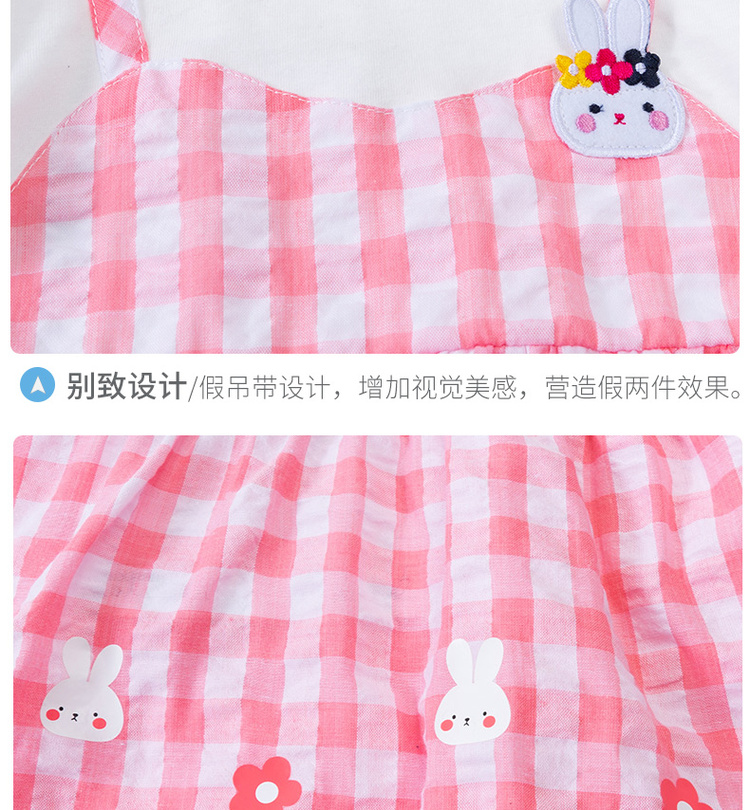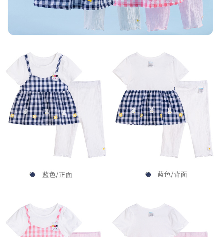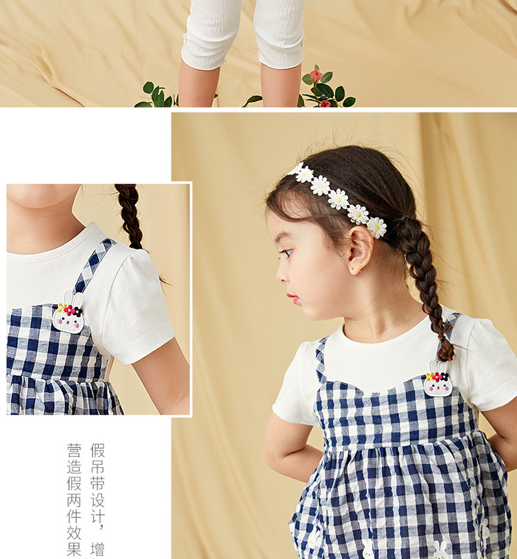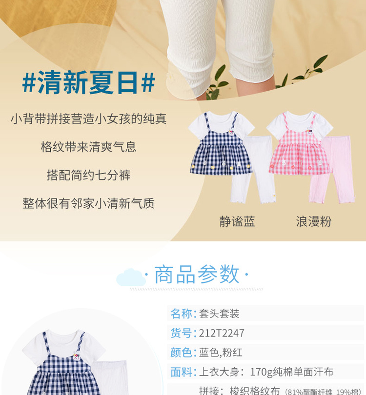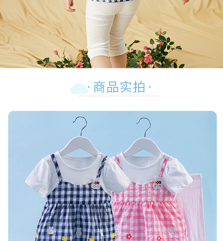 贝贝怡女宝宝拼接假两件小清新七分裤短袖分体套装212T2247