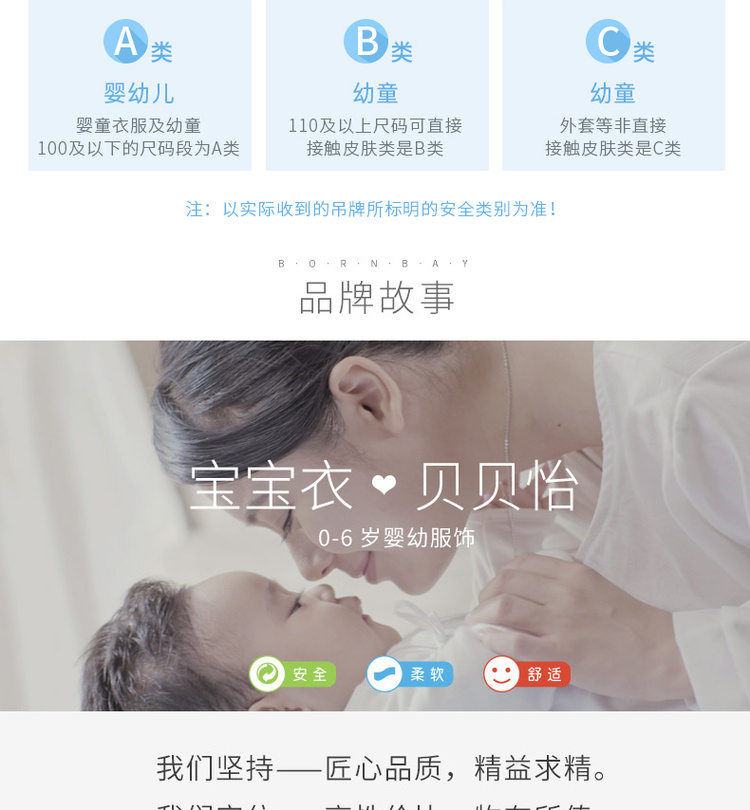 - 贝贝怡专注0-6岁婴幼儿服饰,坚持安全、柔软、舒适的产品理念,为千万中国家庭提供超高品质、安全可靠的婴幼儿服饰产品,妈妈放心,宝宝开心!