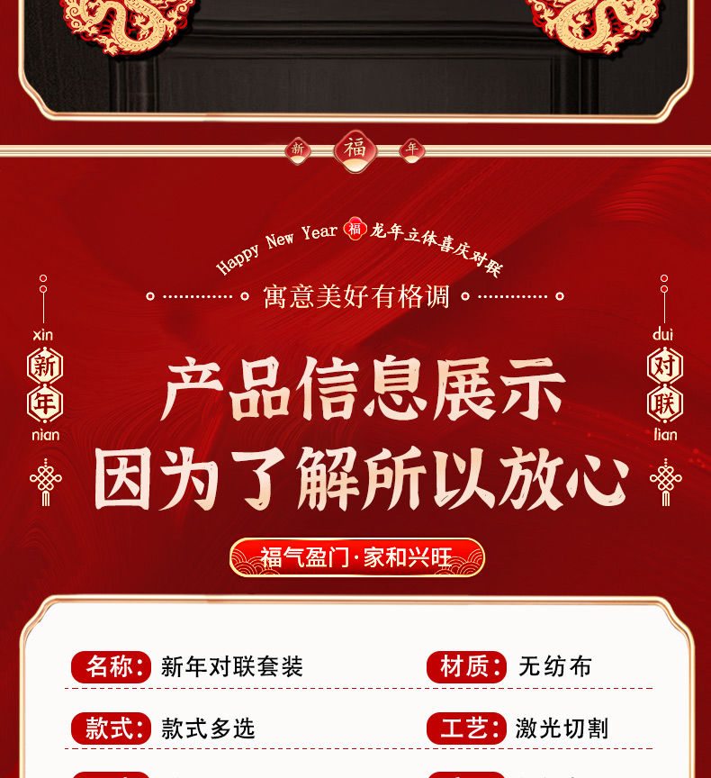 龙年春联装饰家用春节过年福字门贴新年用品挂饰