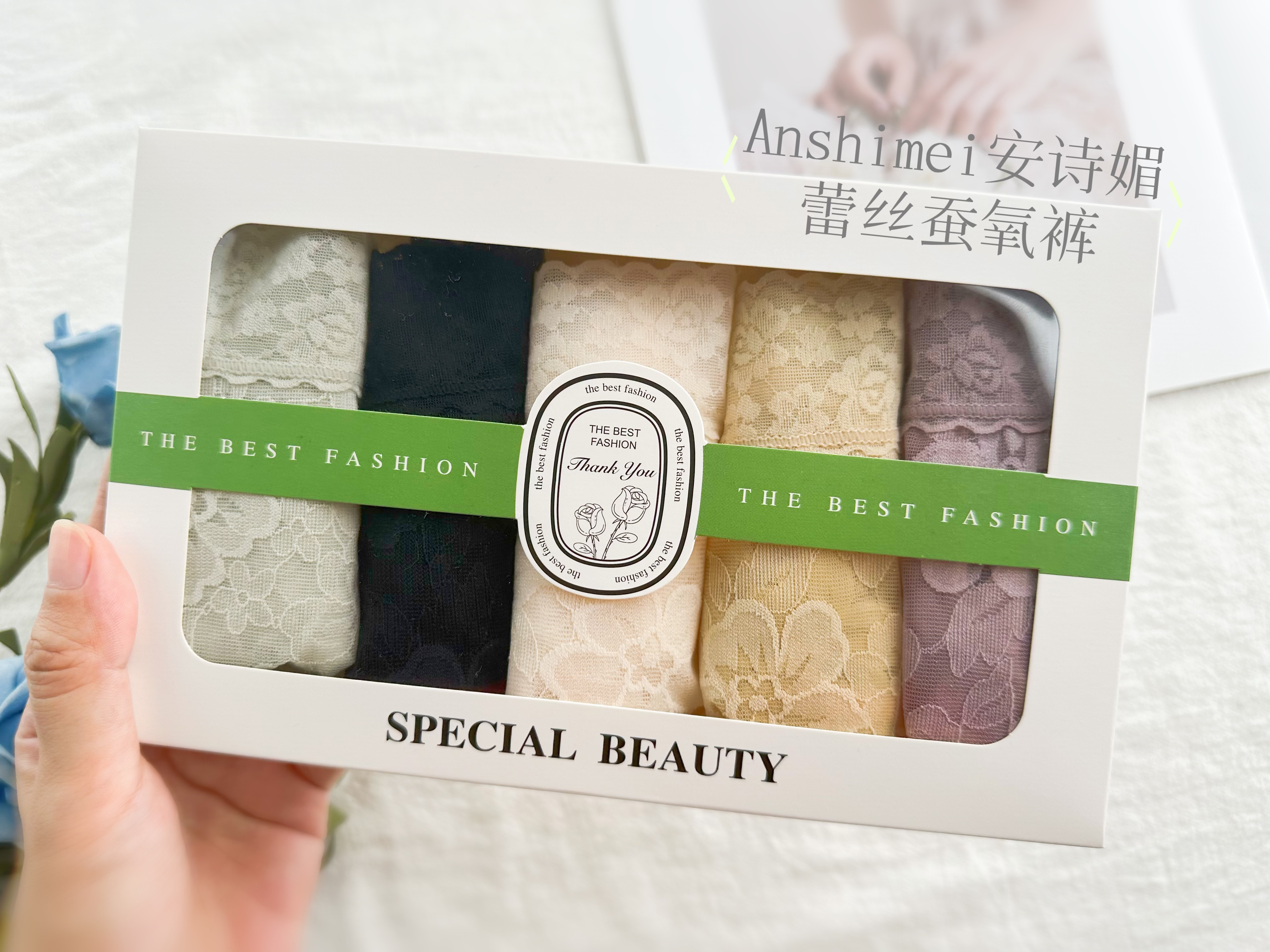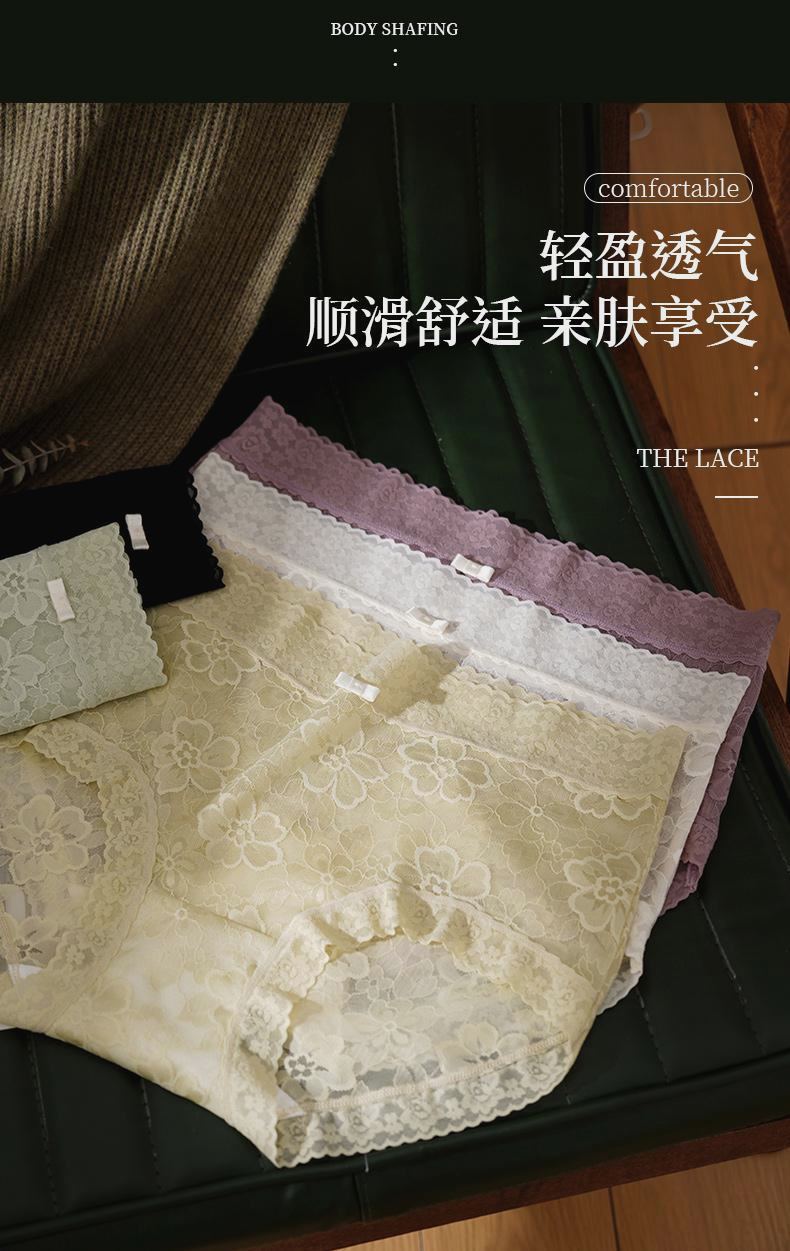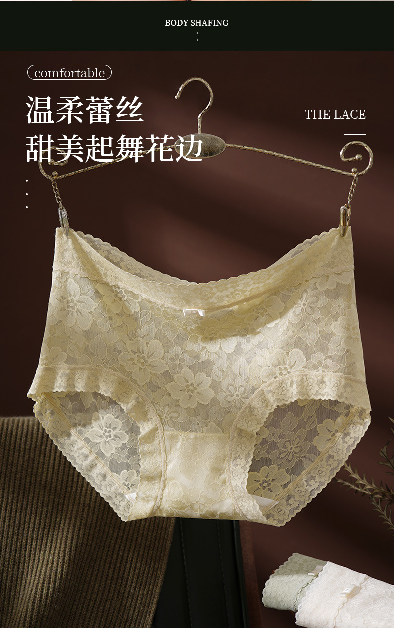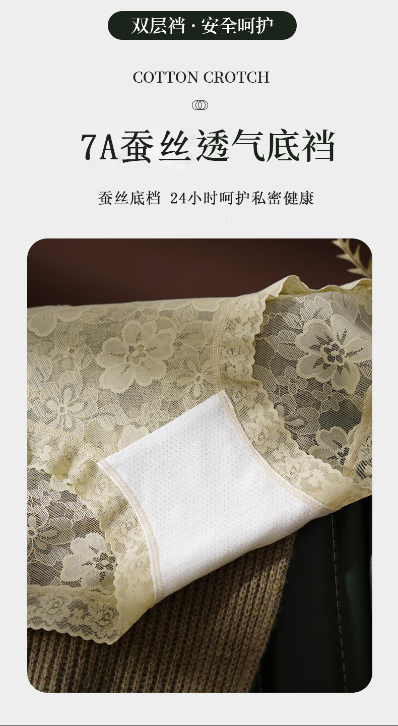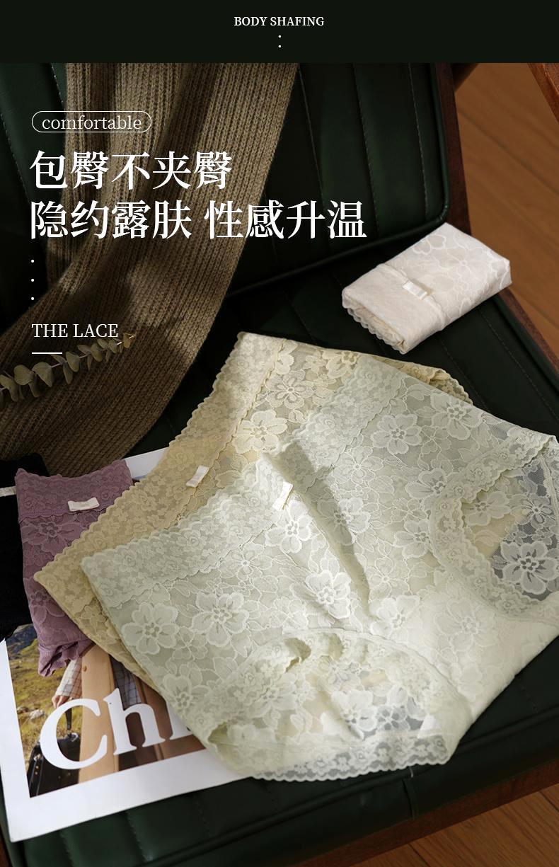 Anshimei安诗媚蕾丝蚕氧内裤,夏日绝配‘’斩男裤‘’ 7A级底档 蚕丝抗菌 性感撩人中腰款舒适弹力全包臀礼盒装