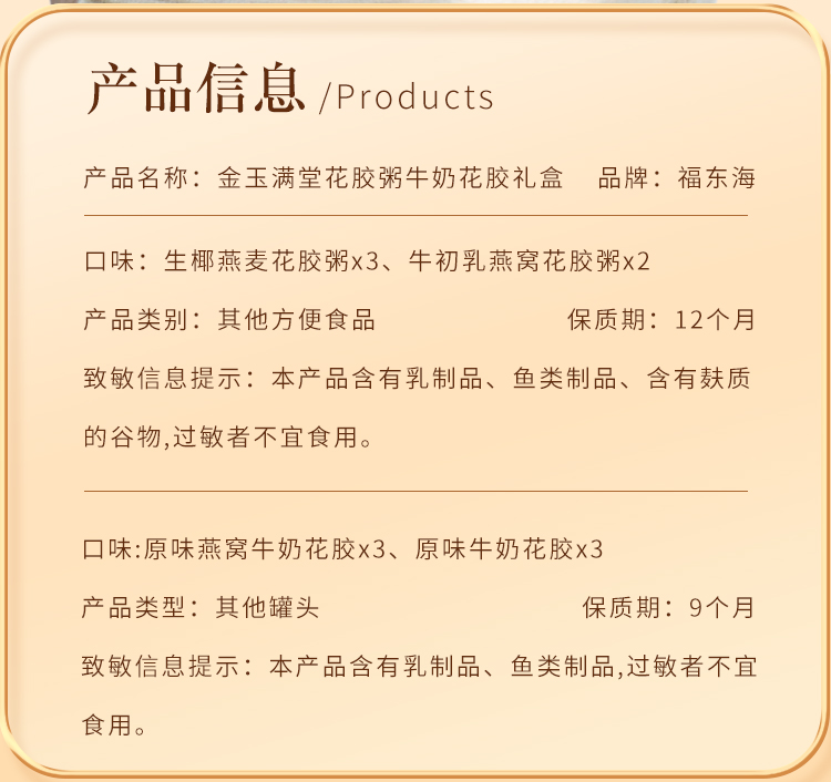 福东海 鲜炖燕窝桃胶羹 牛奶桃胶燕窝银耳羹礼盒 礼物女性滋补送礼 【双胶滋补】燕窝桃胶+厚椰乳花胶258g*8碗
