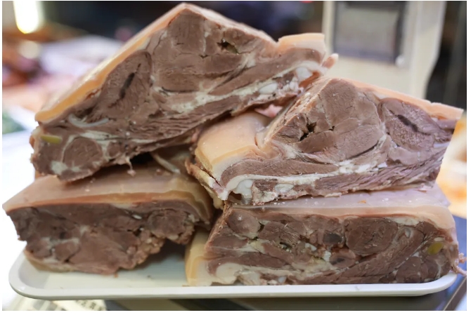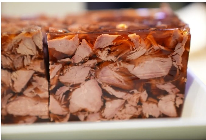 藏书羊羔冻,起源于苏州藏书镇,是用羊肉和猪皮冻制作而成的传统羊肉美食,是苏州市级的非遗手工技艺。