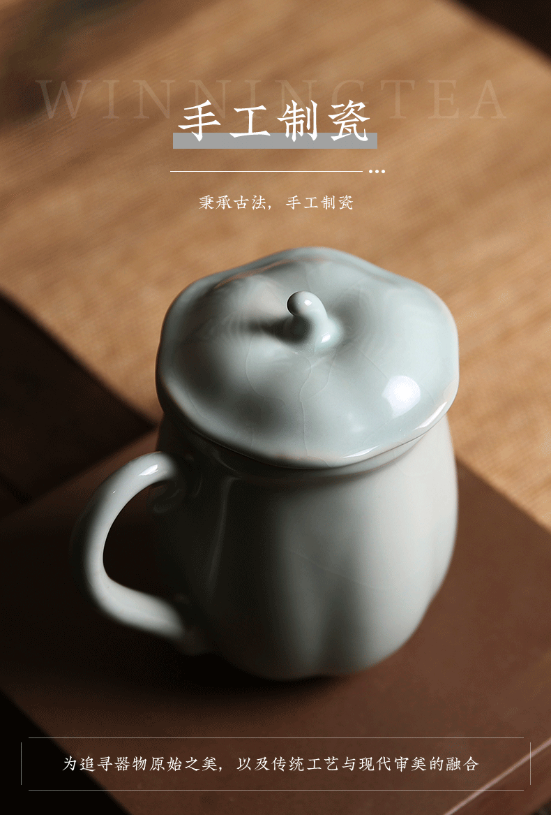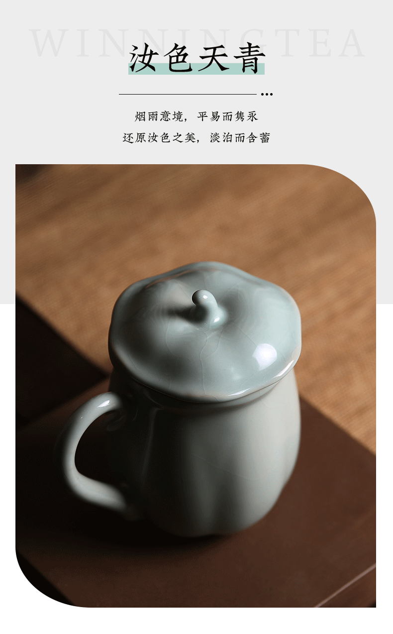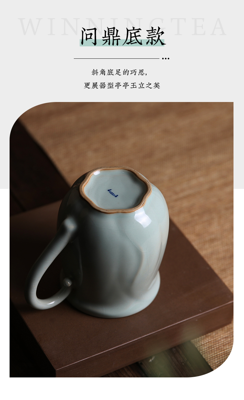 问鼎汝瓷鼎峰系列天青老款荷叶老板杯(缺货)