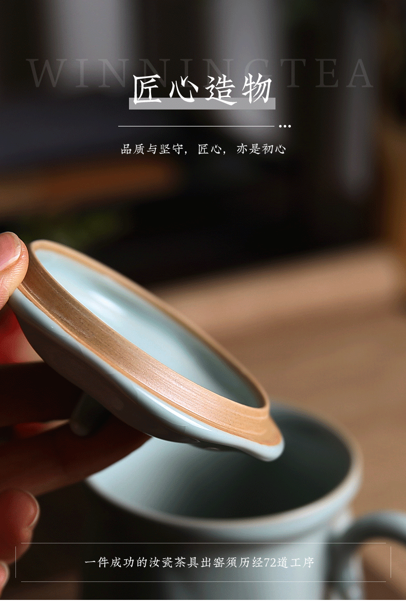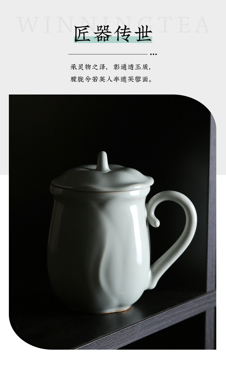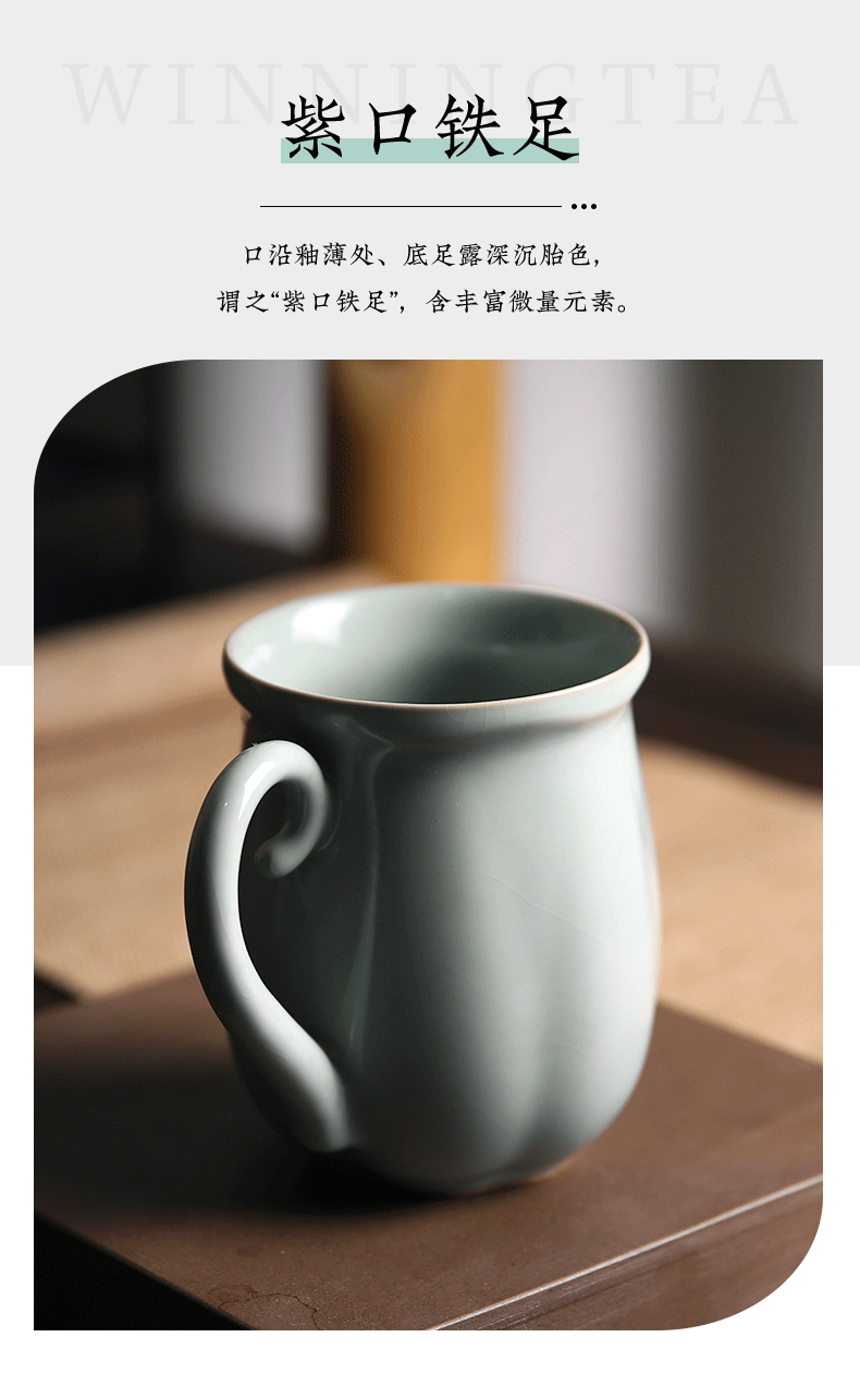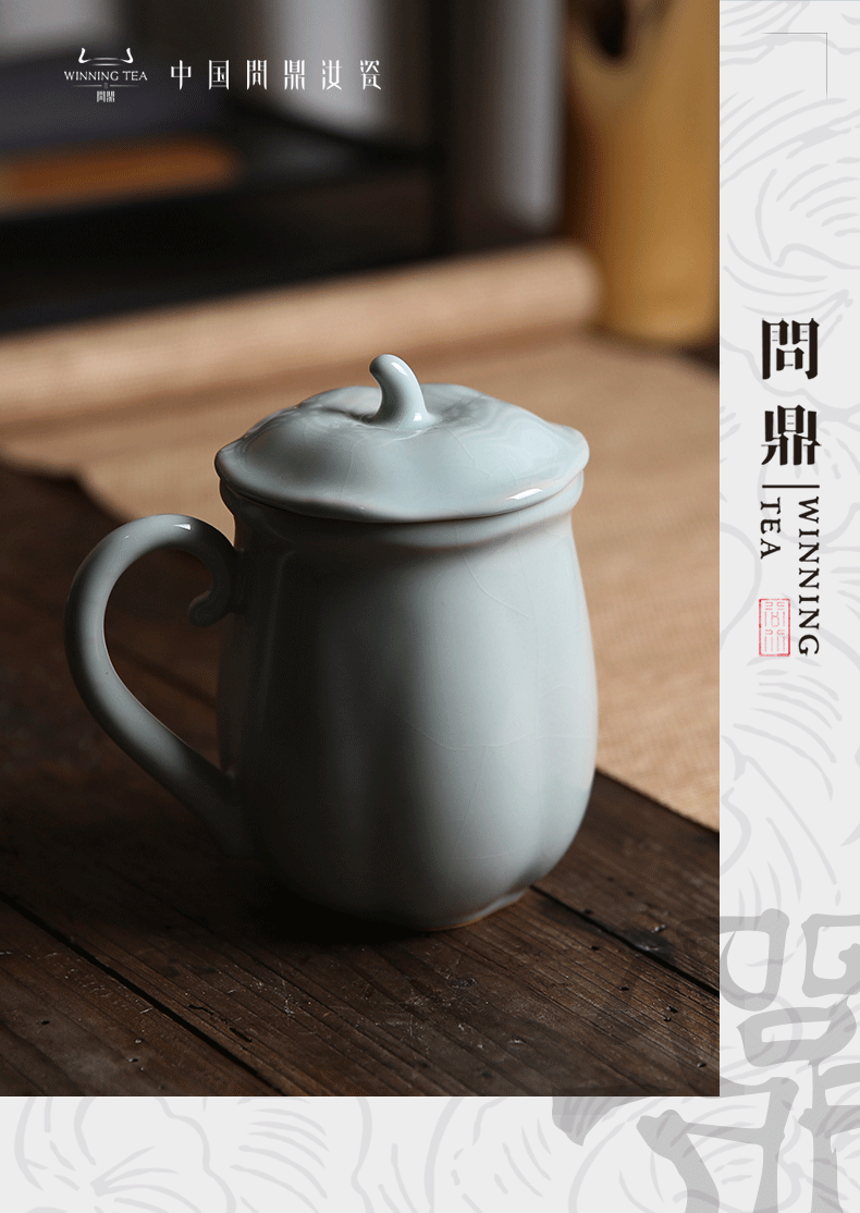 问鼎汝瓷鼎峰系列天青老款荷叶老板杯(缺货)