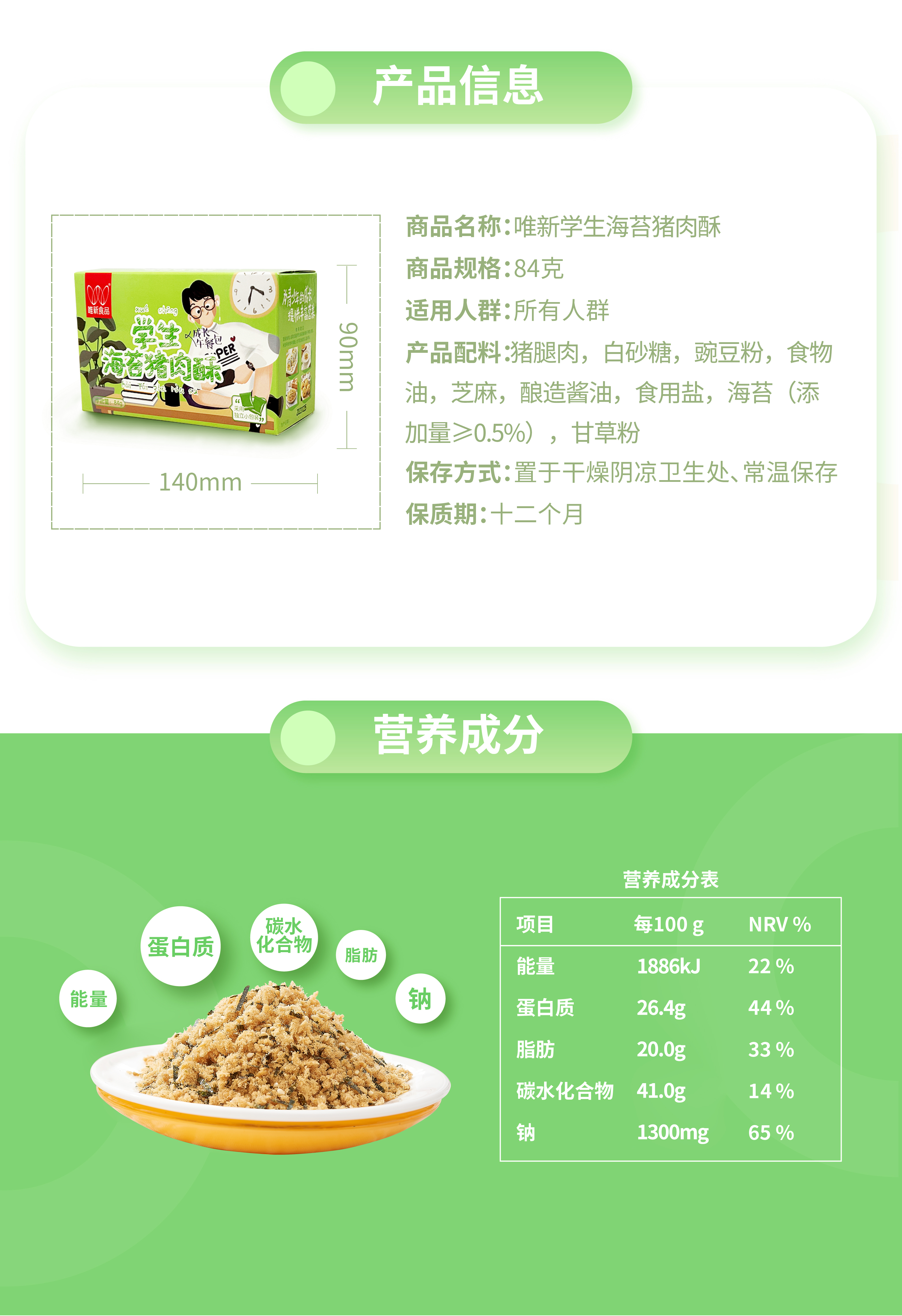 【休闲食品 肉酥】唯新84g学生肉酥海苔猪肉酥独立小包装