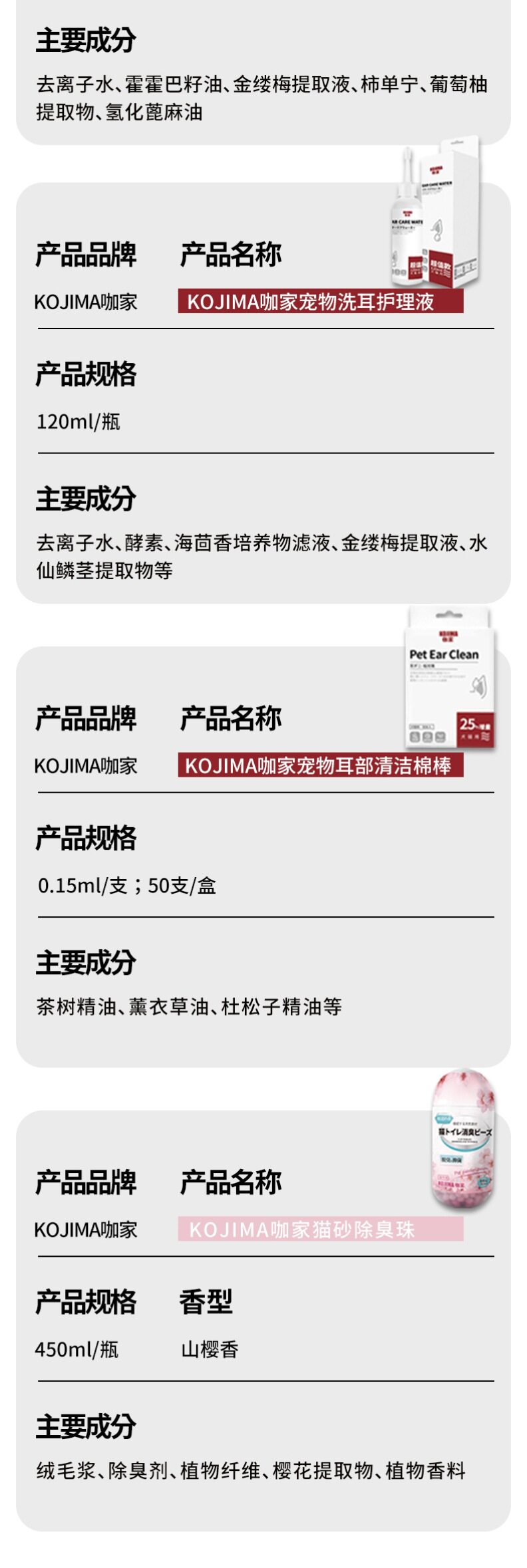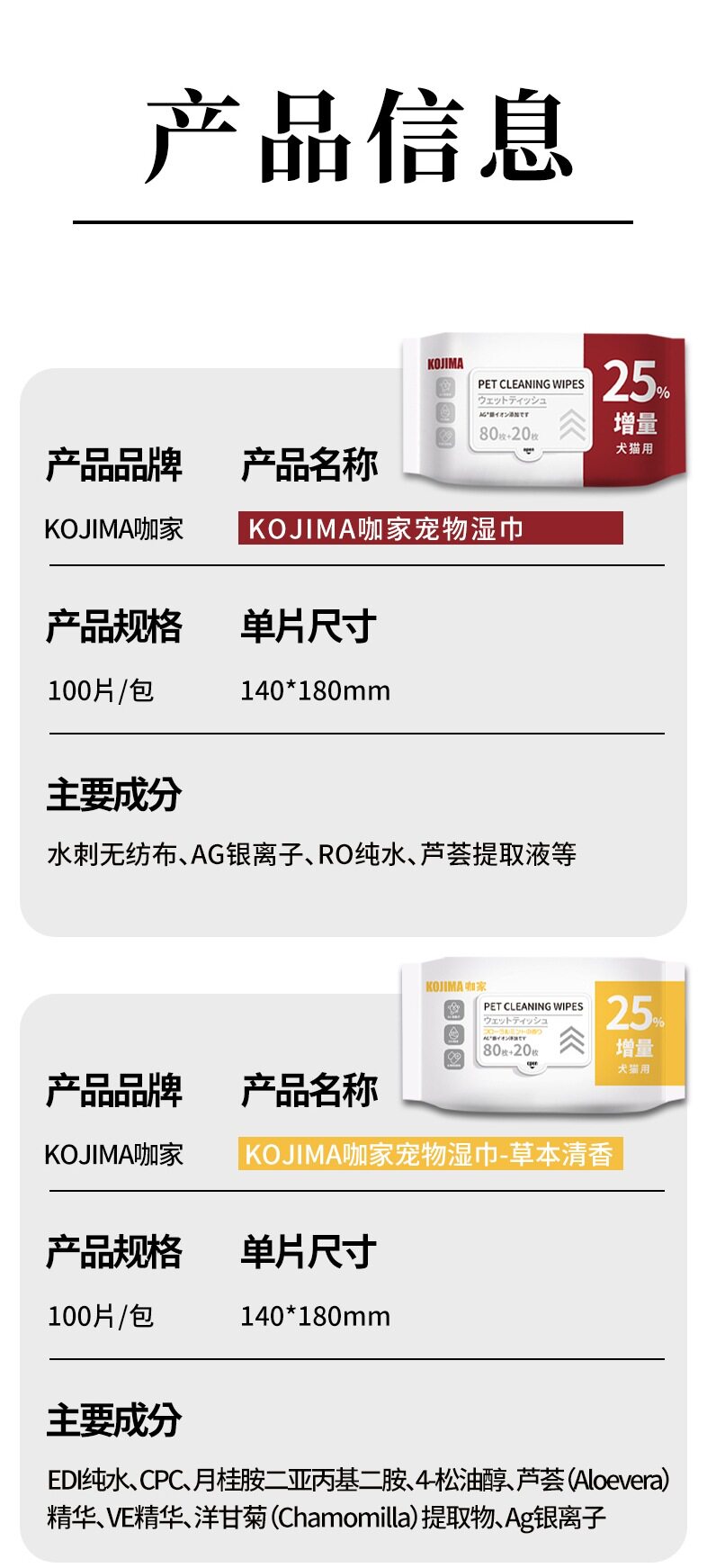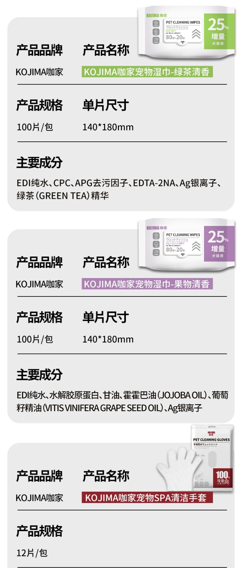 增量装KOJIMA宠物湿巾去泪痕湿巾免洗手套湿巾洗耳液滴耳液去油膏