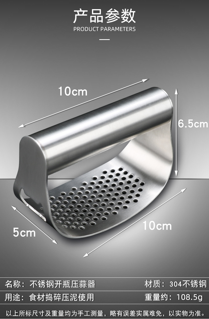 【多功能带开瓶功能蒜泥器】全304不锈钢压蒜器 创意捣蒜器蒜蓉器工具