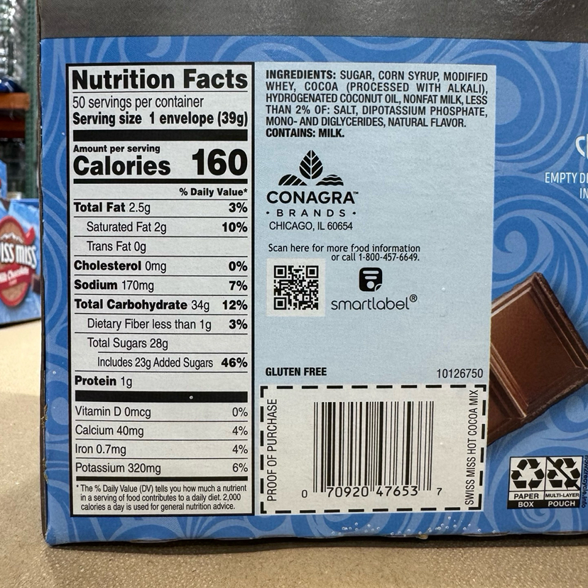 每天来一杯纯纯滴热可可☕ 特别香浓😇非常好喝!所以推荐给你们😋😋特价240元/50袋装😍😍Swiss miss/瑞士小姐 特浓牛奶巧克力粉1.95kg(50包)可可+牛奶的完美2合1组合,在阳光的清晨,[太阳]惬意的午后,冲上一杯热可可,都是非常棒的选择,据说这个品牌中国一杯就要几十块RMB‼️每盒50小袋独立包装可可粉,携带方便、冲饮简单、香浓美味,一袋热巧粉+一杯热水,就可以随时随地享受美味,实在是太划算啦[憨笑]