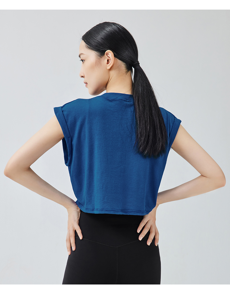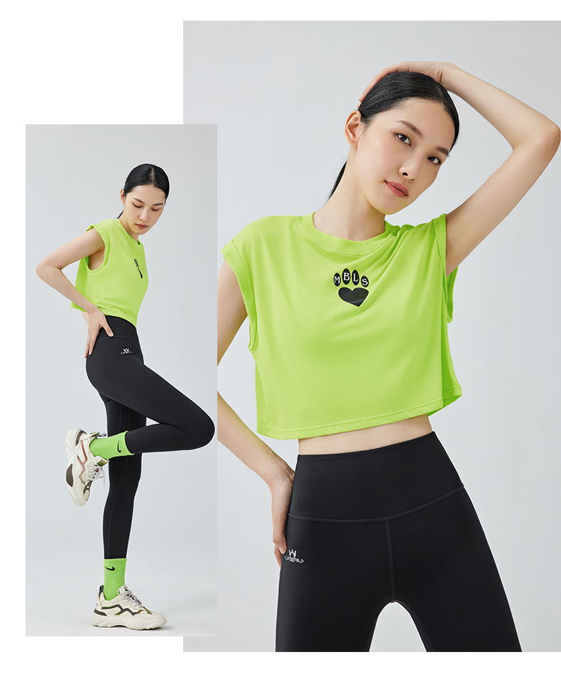 【路路精选】运动瑜伽外穿圆领收腰轻薄透气无袖含胸垫女螺纹背心
