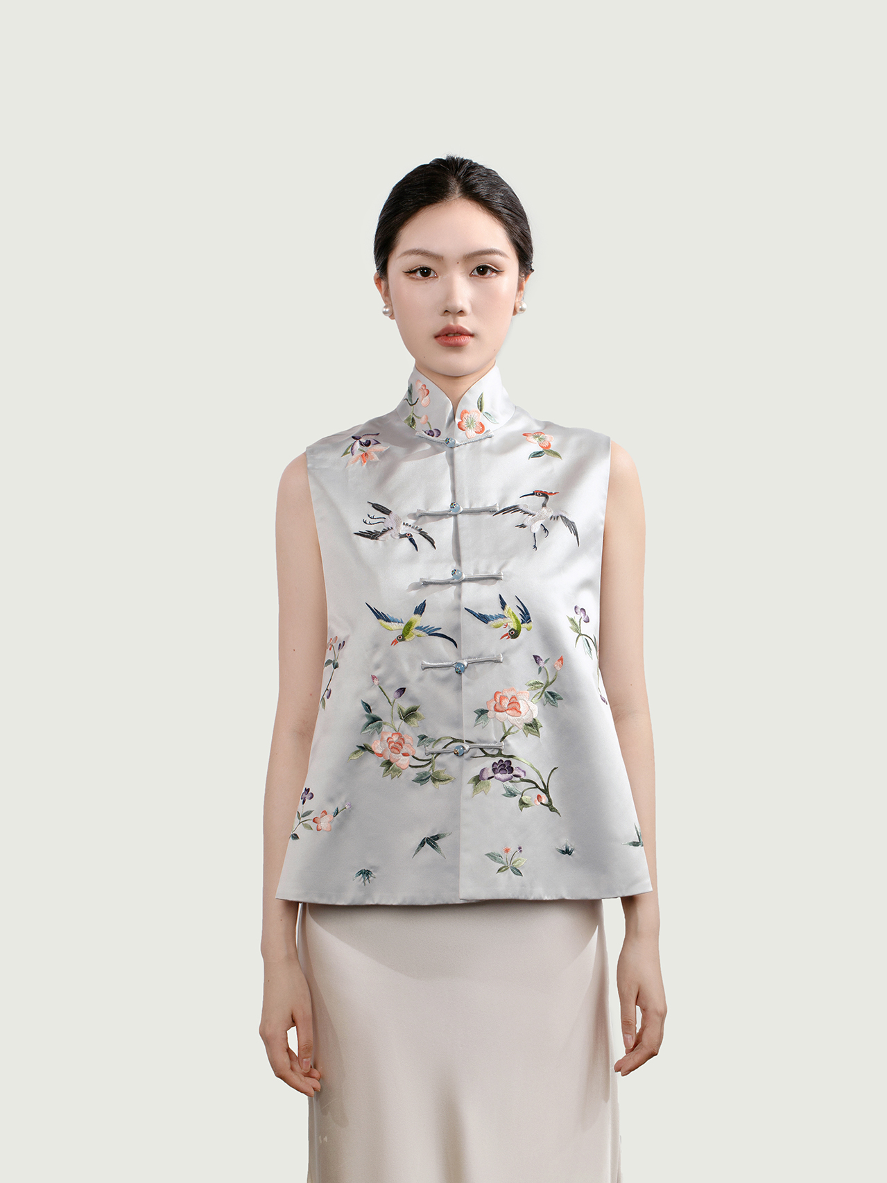盛唐牡丹大师系列 | 富贵牡丹手绣真丝马甲 (盛唐牡丹与非遗传承人王小潇联名系列)