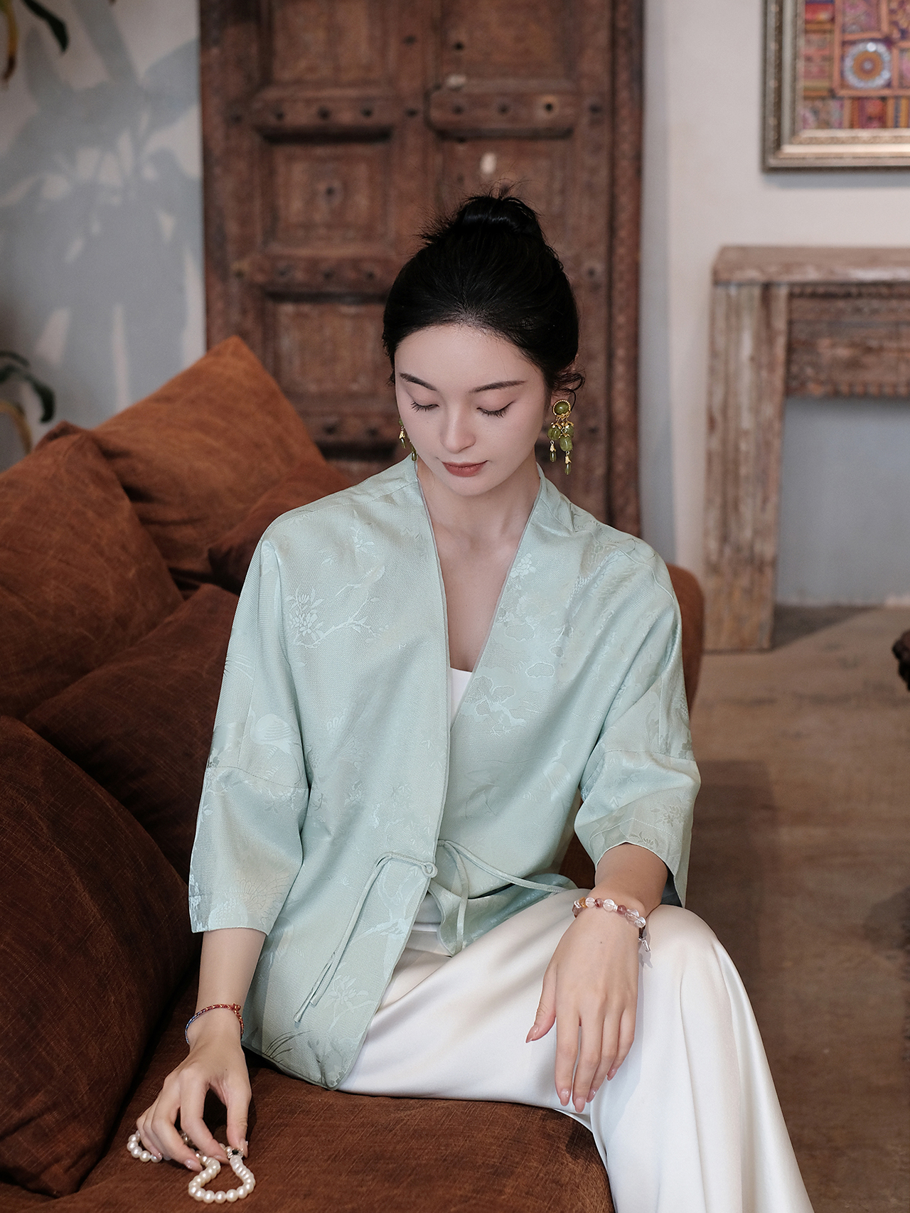 盛唐牡丹 |真丝提花梅兰竹菊偏襟上衣