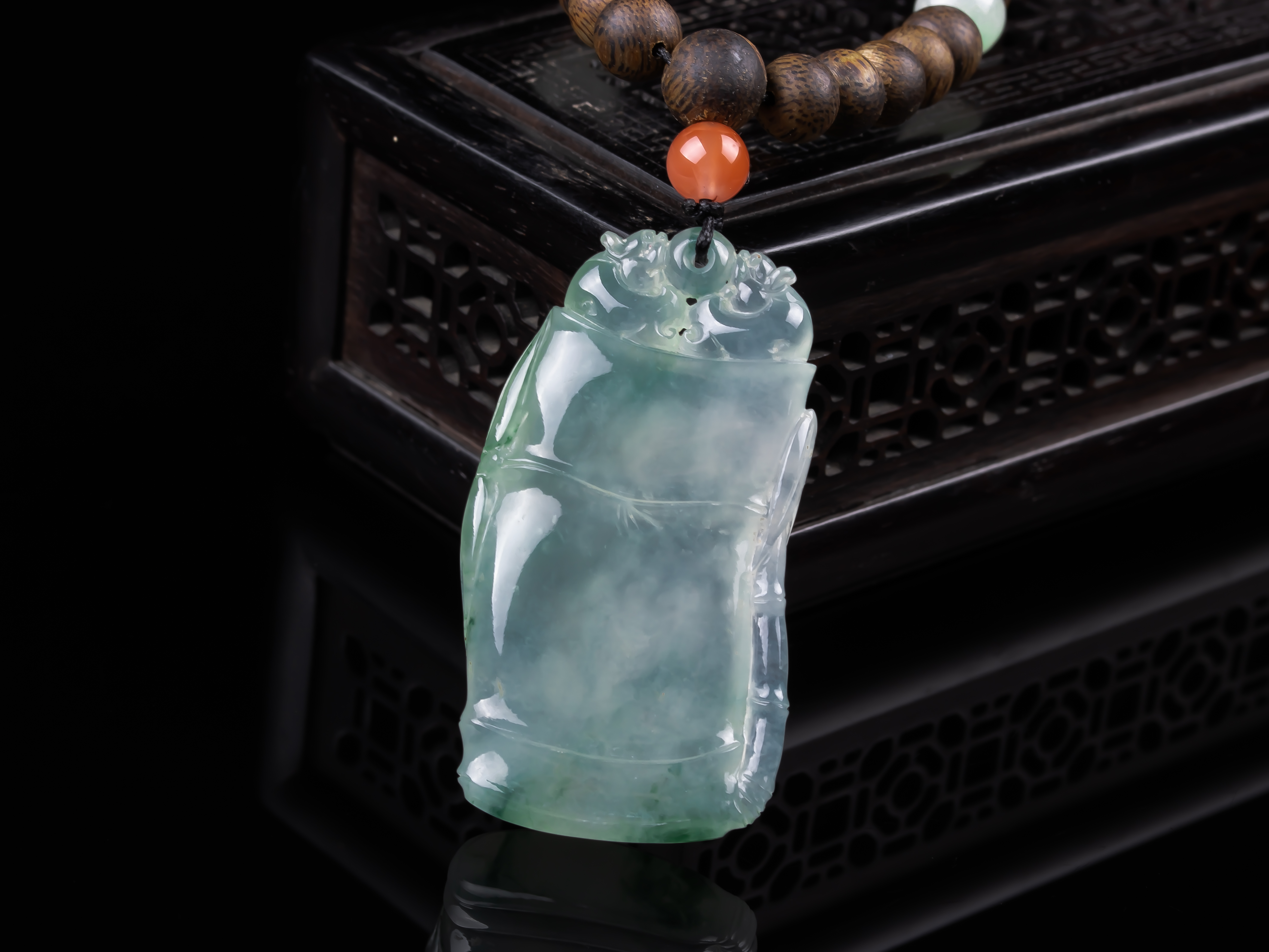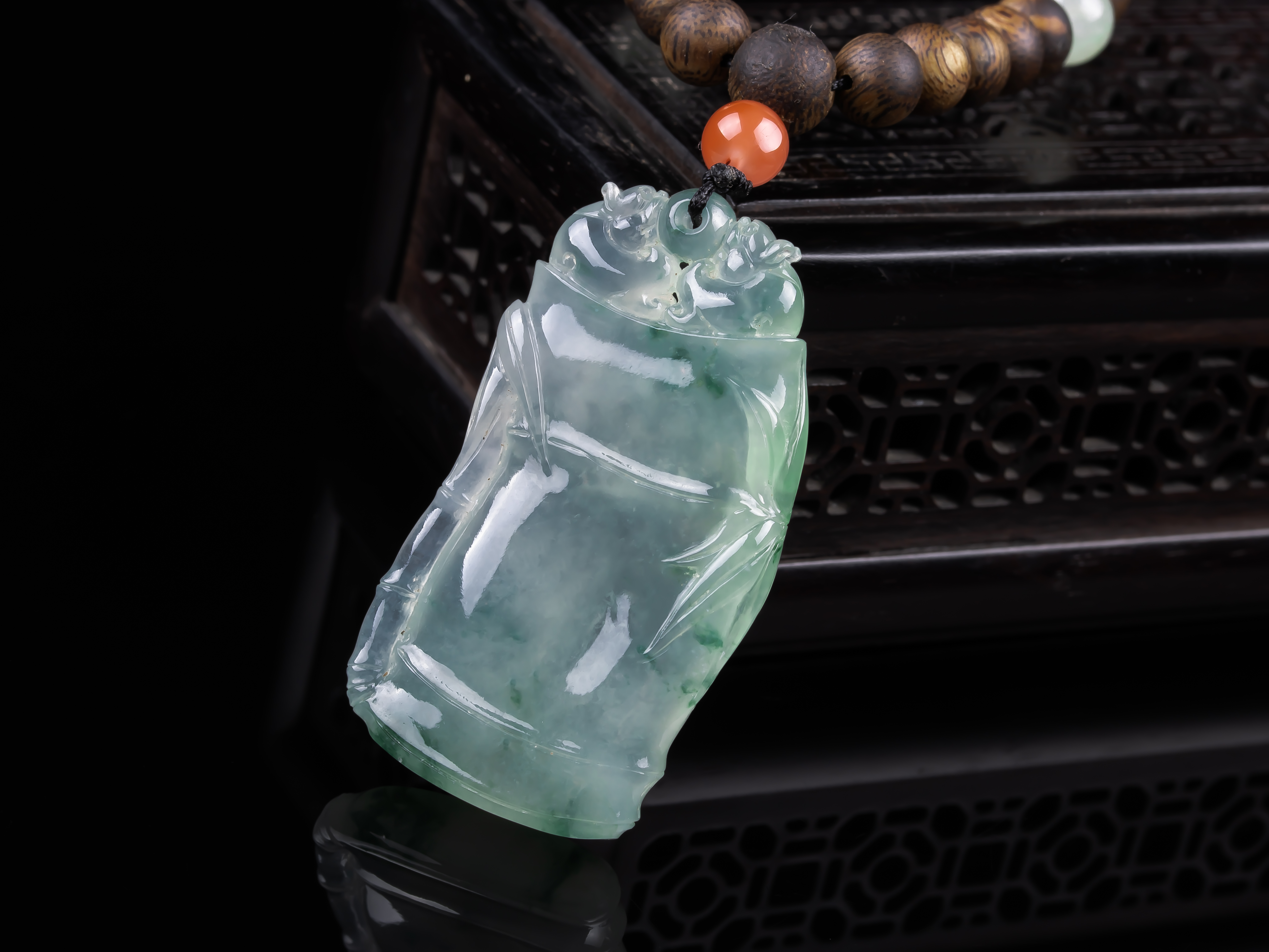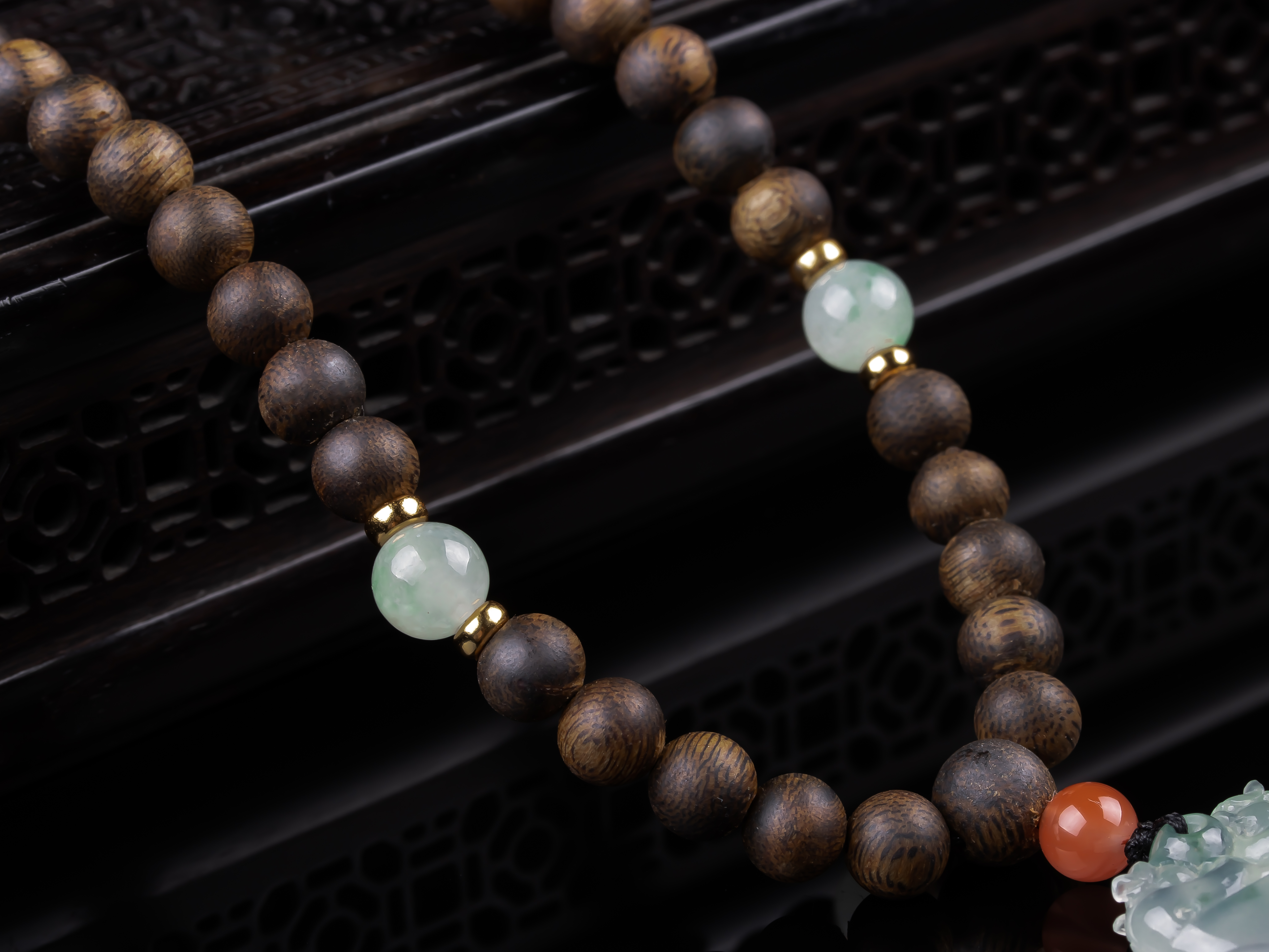 XY0289沉香+冰种翡翠竹节挂件,天然沉香约8mm,原色原味,香味自然清甜,冰种的翡翠竹节,质地冰润细腻,水头十足,飘花灵动,配珠:翡翠、南红、925银,竹节寓意事业步步高升。