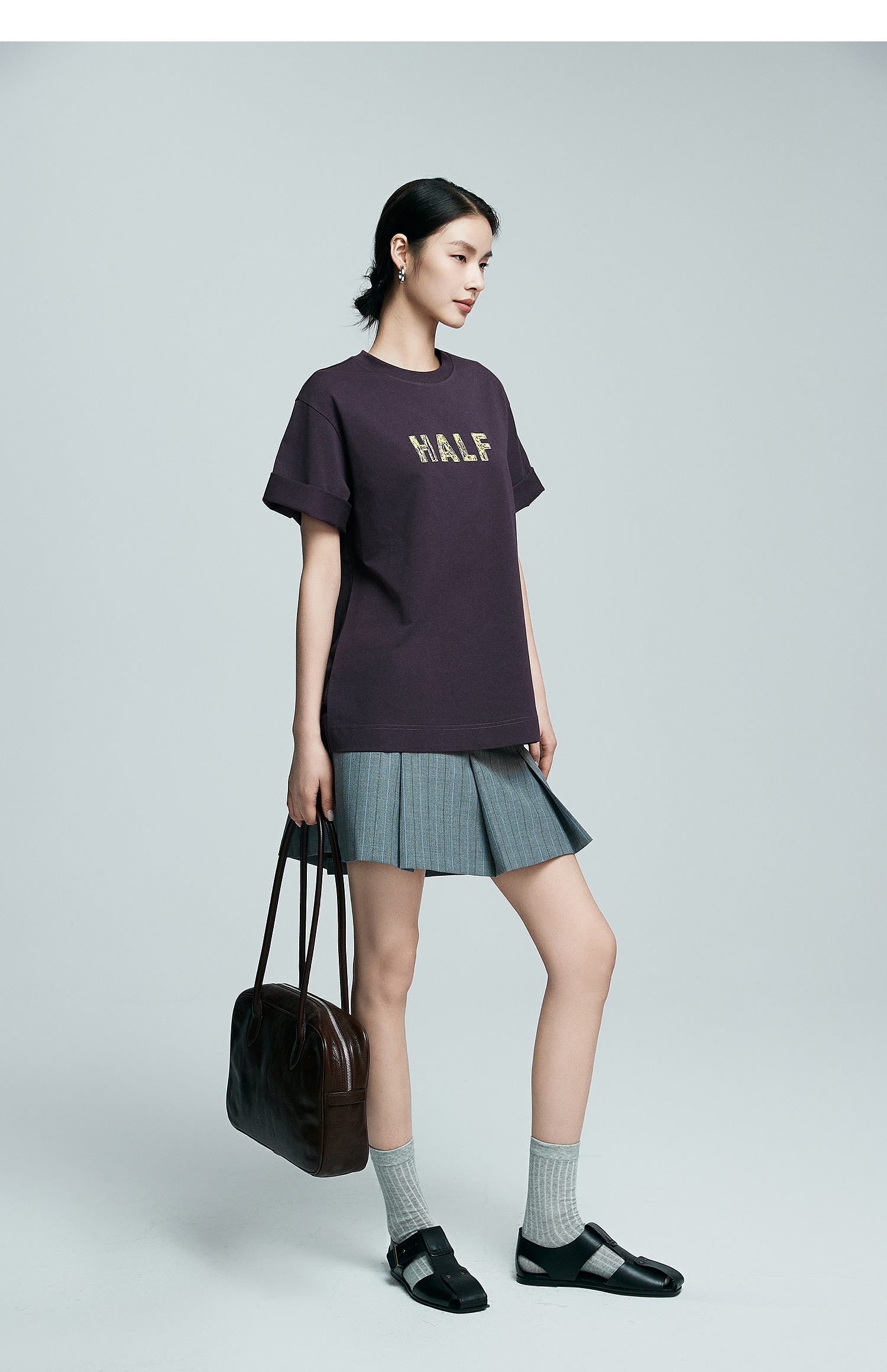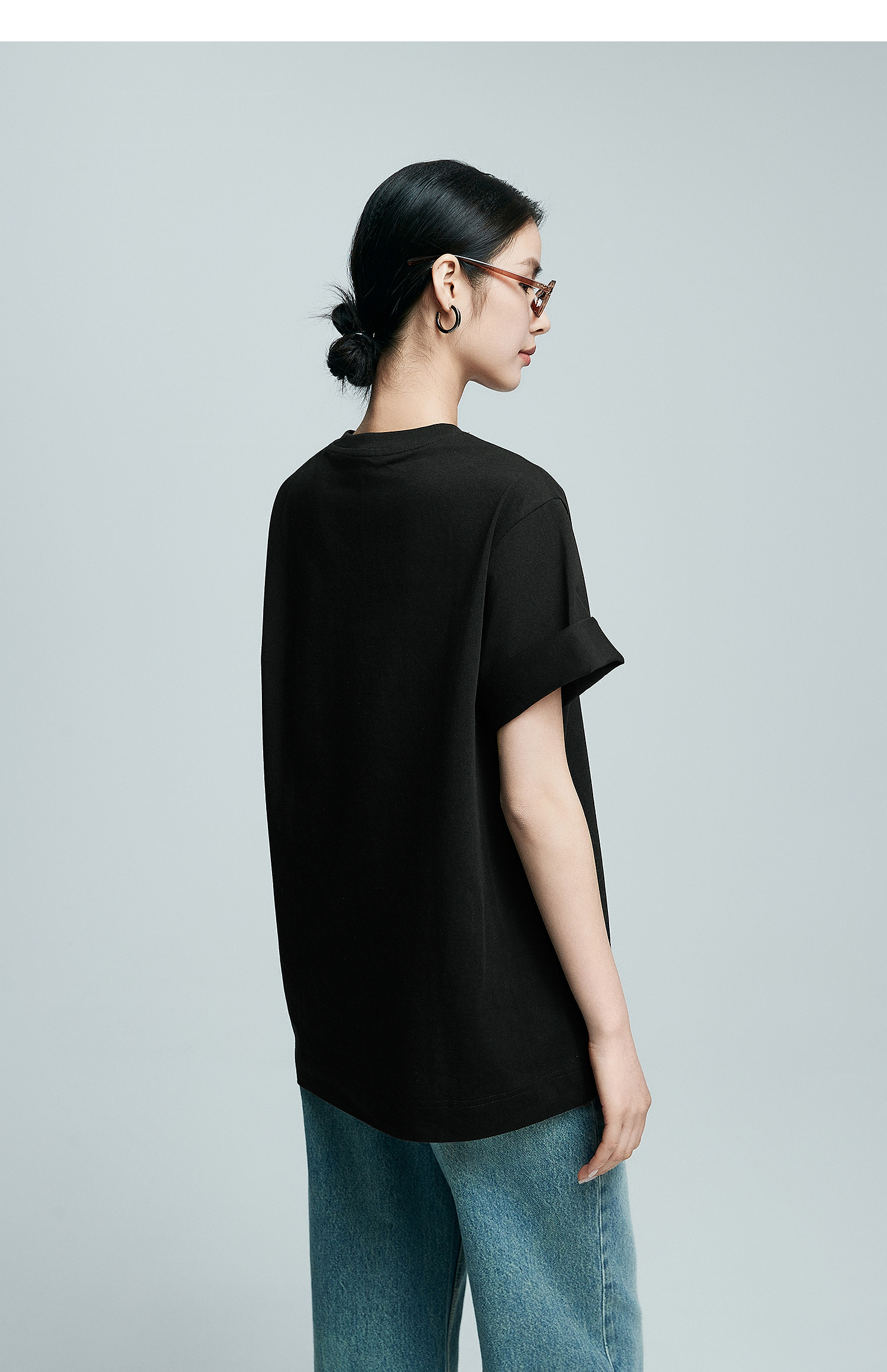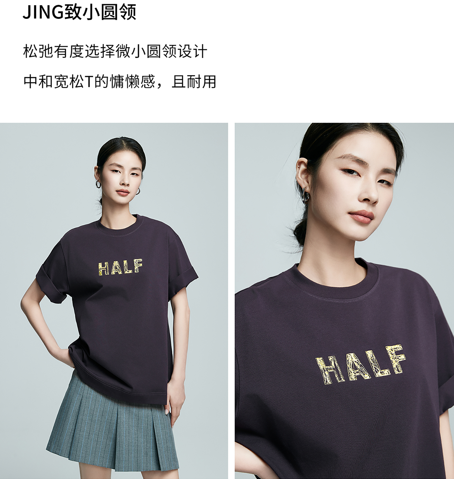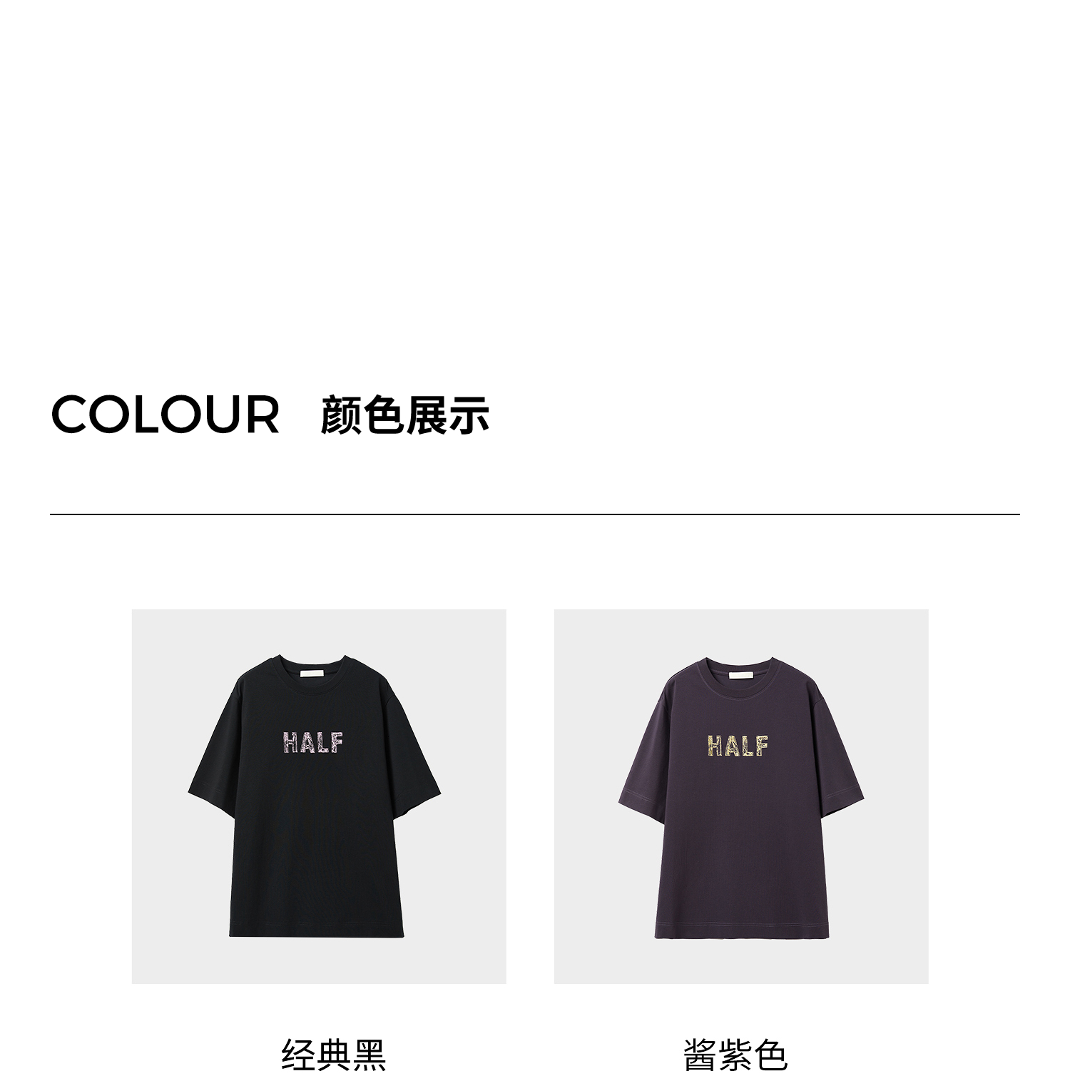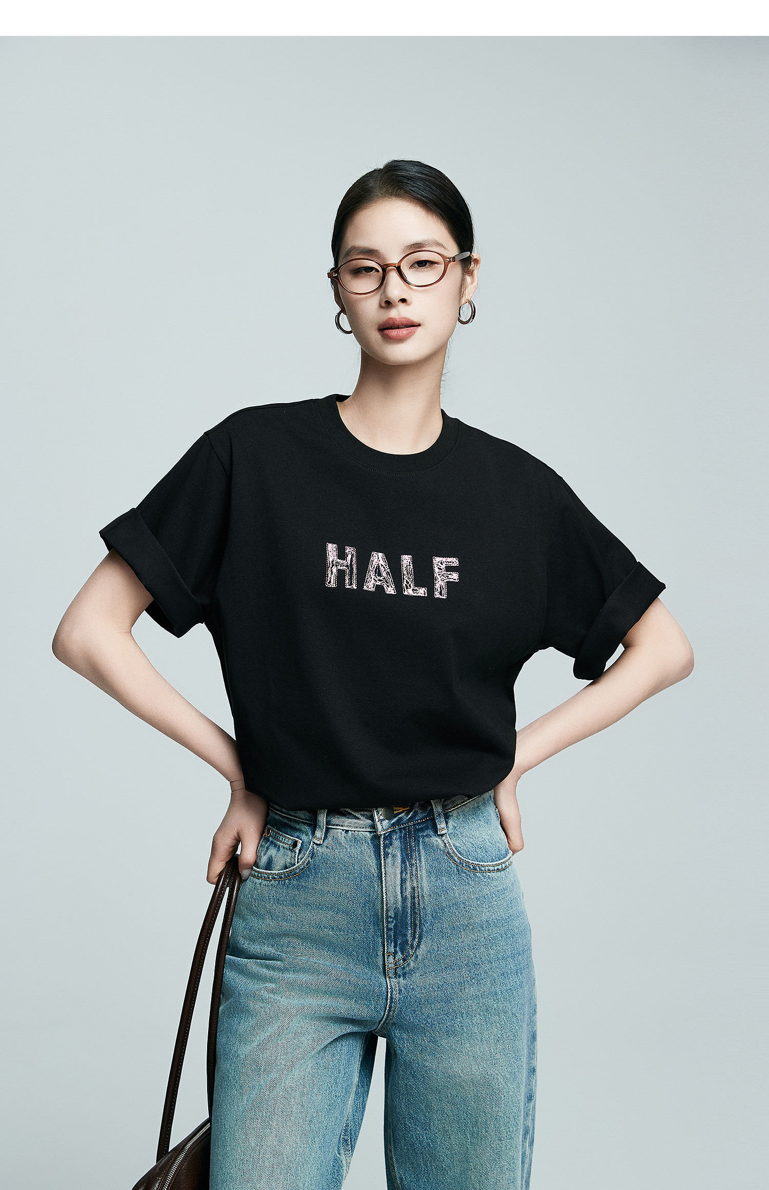 棉仓363601026-初棉斑驳乱针刺绣字母宽松版型重磅T