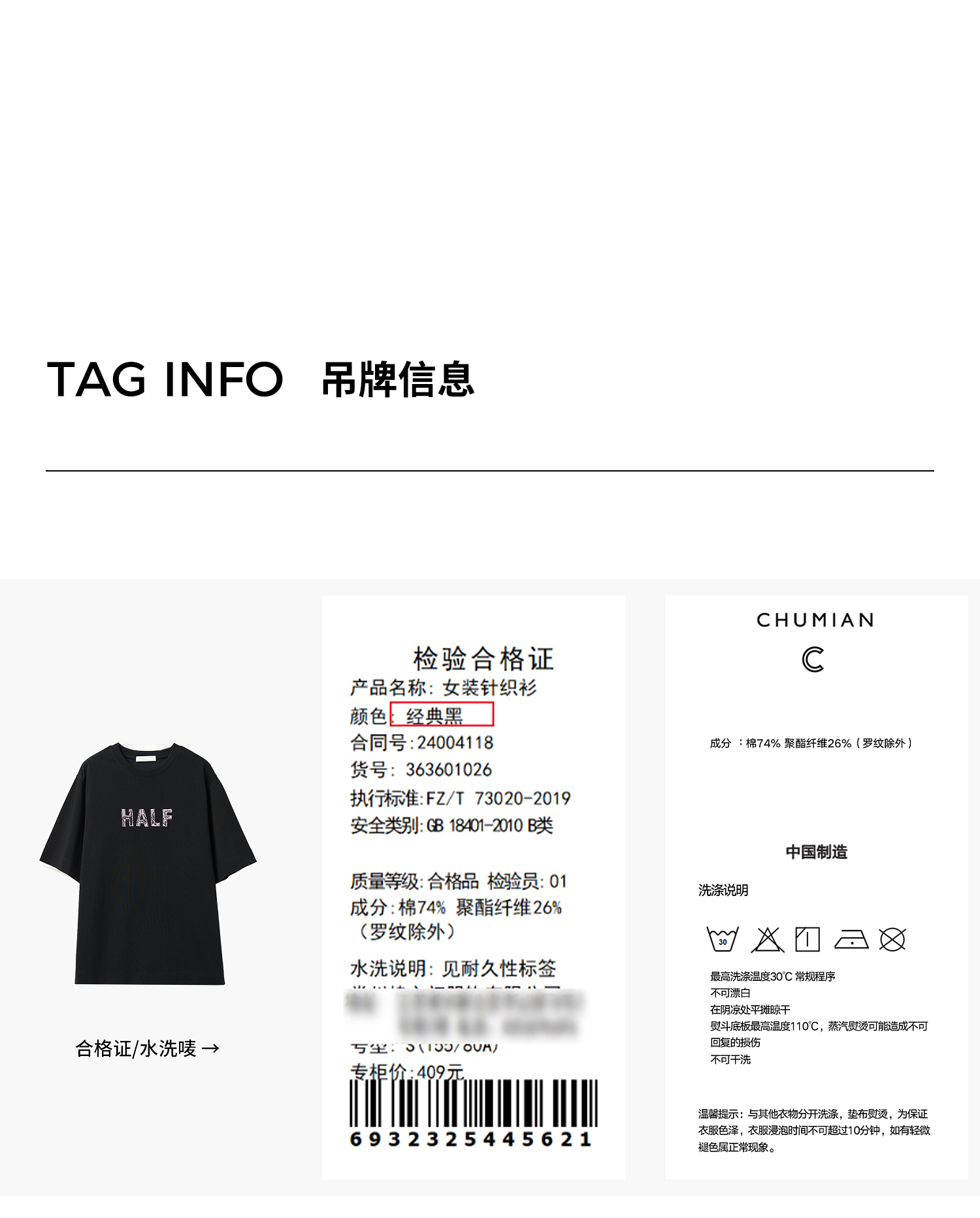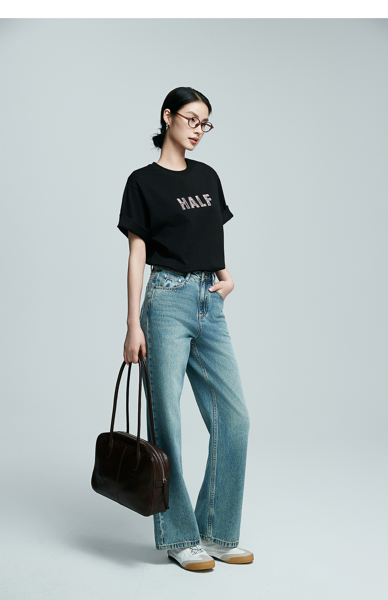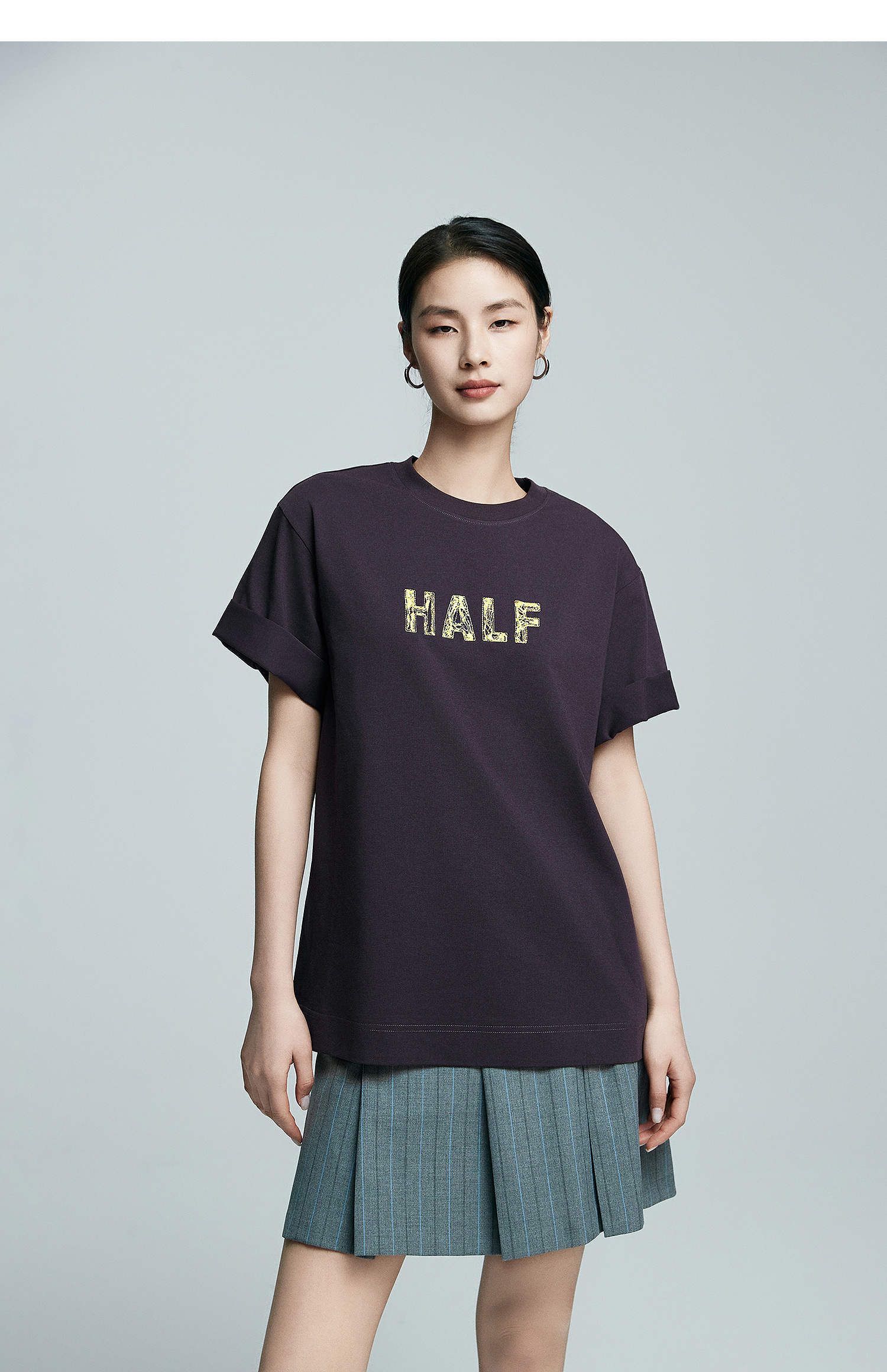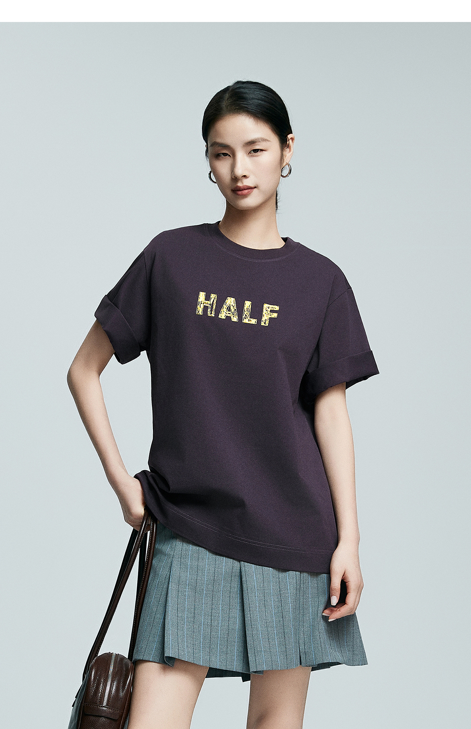 棉仓363601026-初棉斑驳乱针刺绣字母宽松版型重磅T