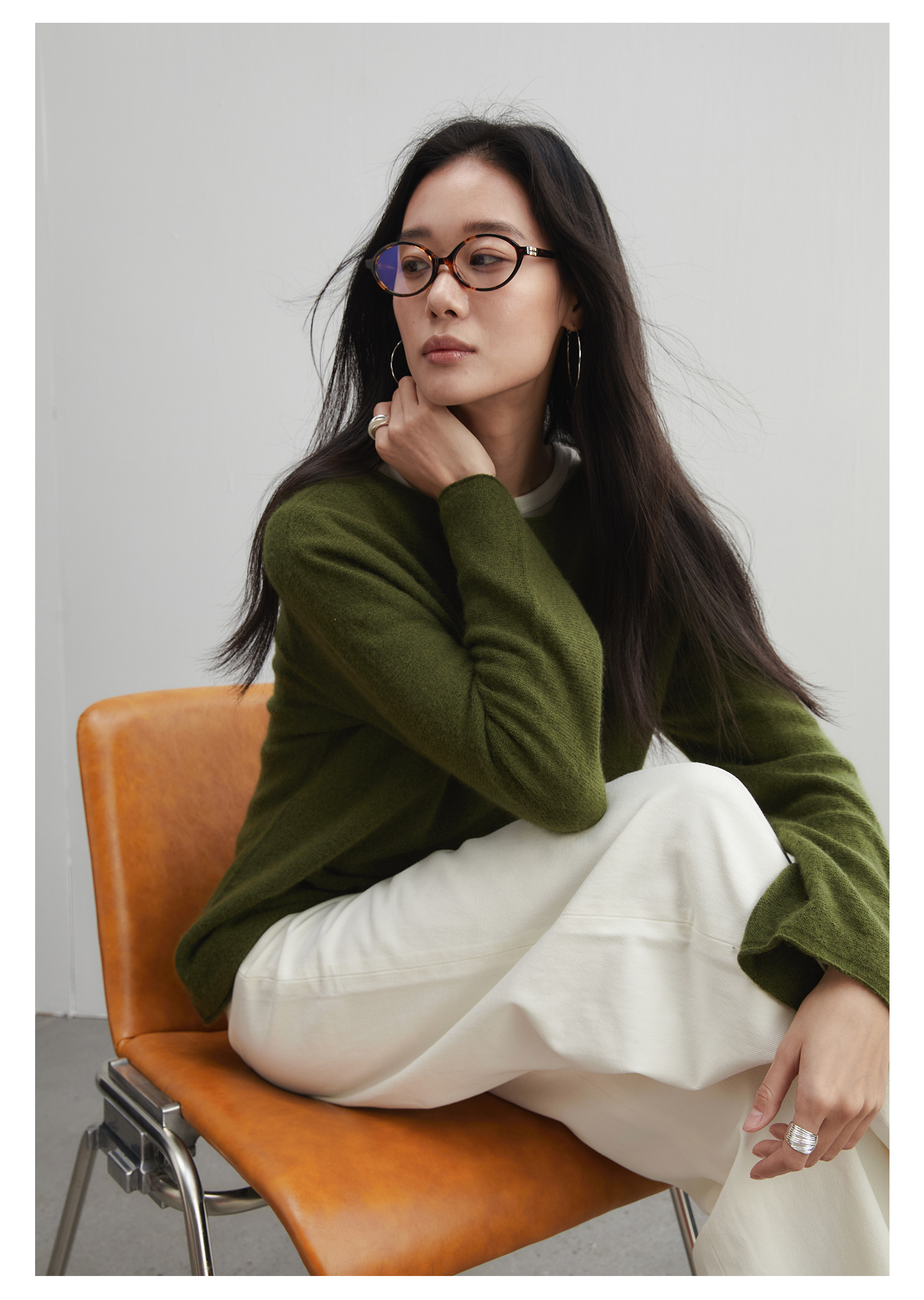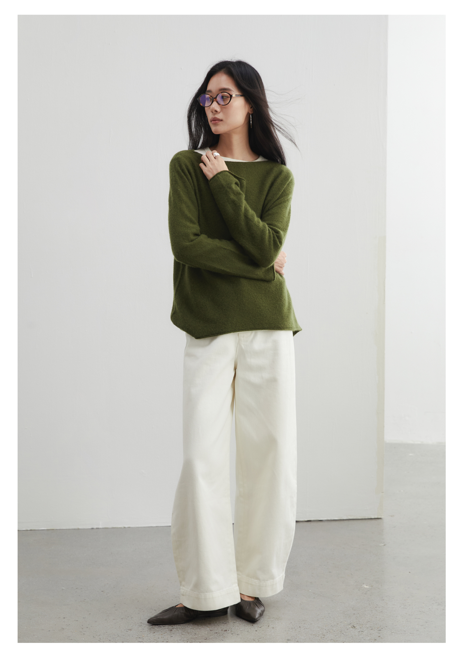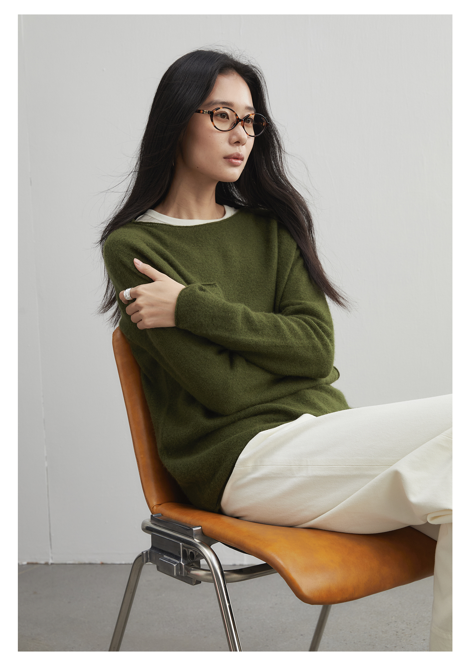 棉仓3561505012-秋季宽松无缝一体羊毛衫 静奢风羊毛羊绒蚕丝毛衣
