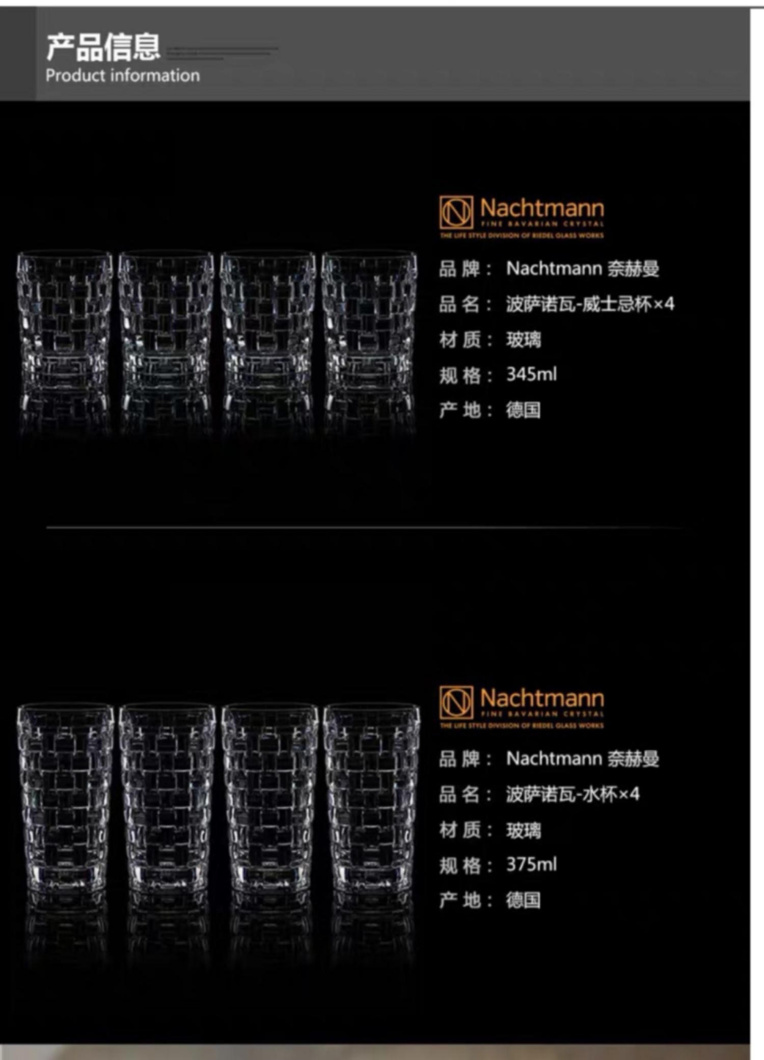 10楼菲仕乐 德国进口玻璃水杯(4只装)波萨诺瓦 吊牌价880元 活动价 498元