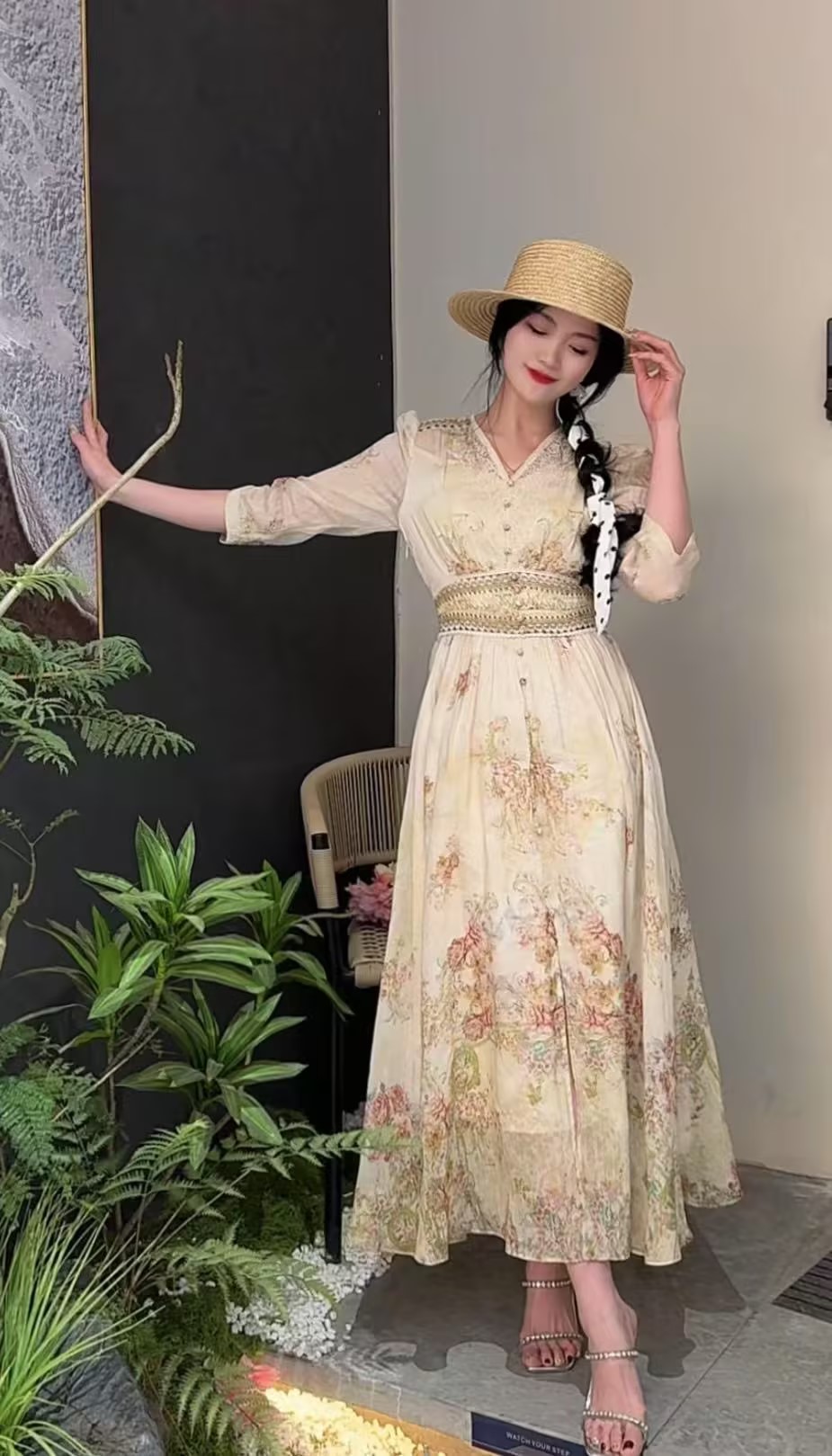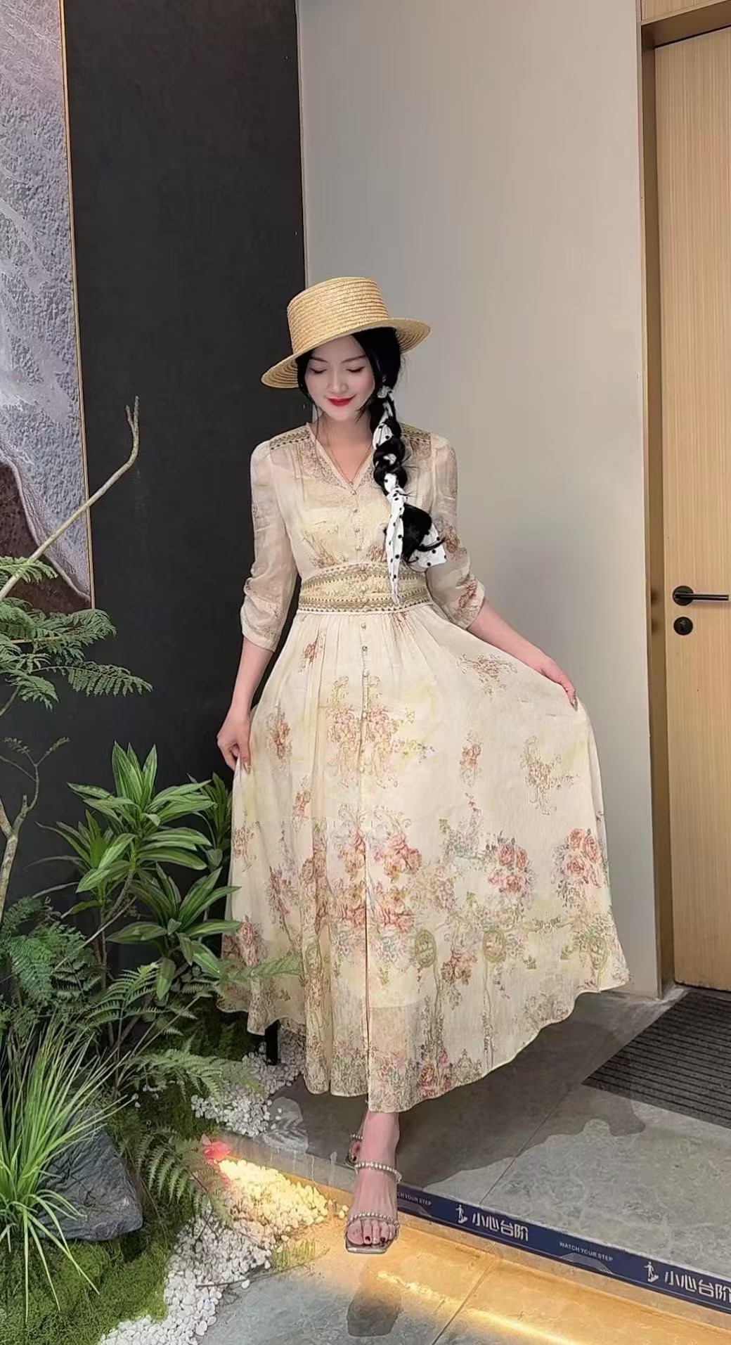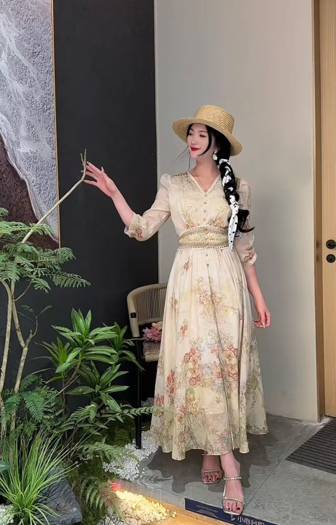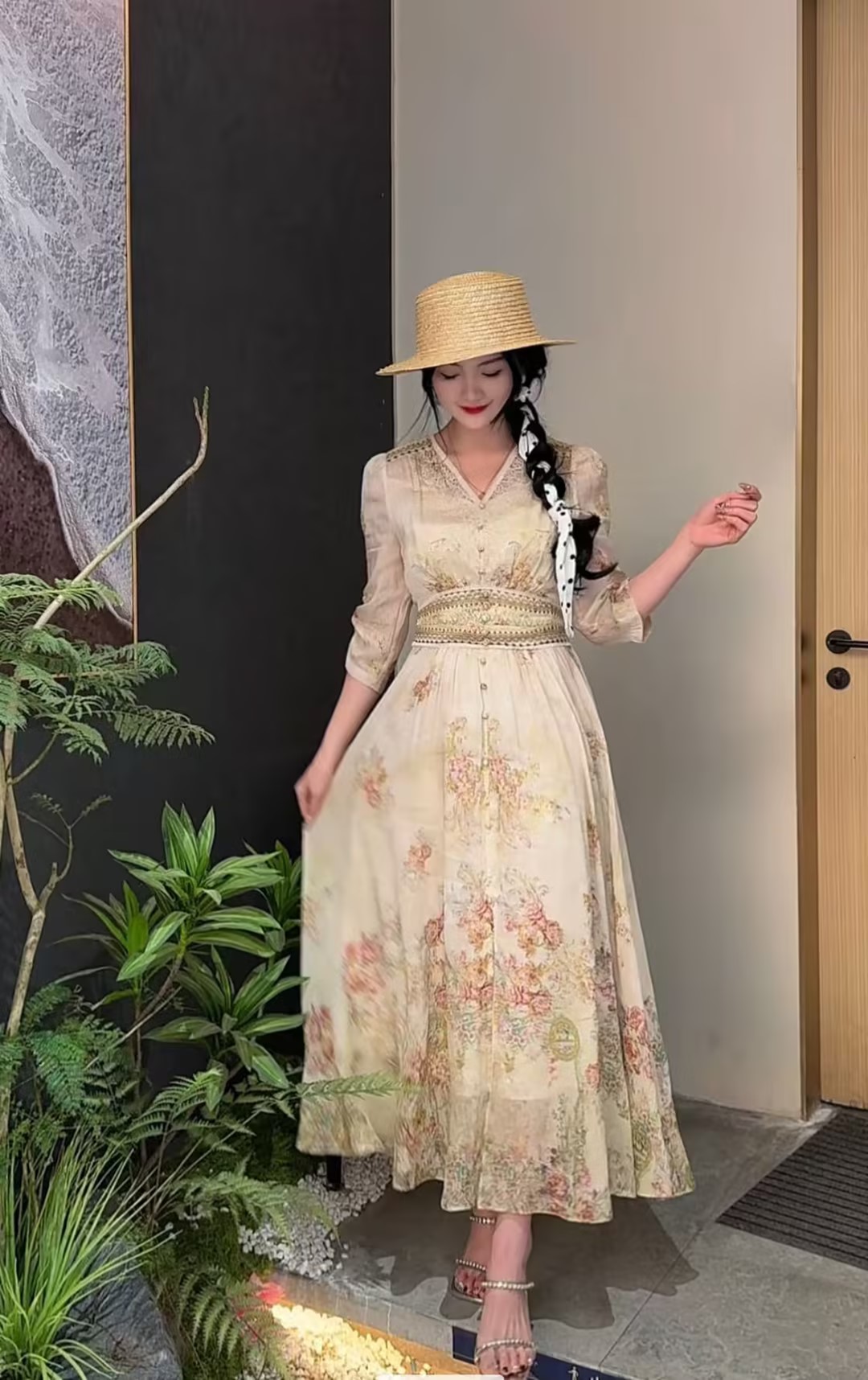 SZ1S60_如梦令色_连衣裙_春夏_分袖收腰大摆优雅气质通勤_高级女装_BERNIEELEN 伯妮斯茵