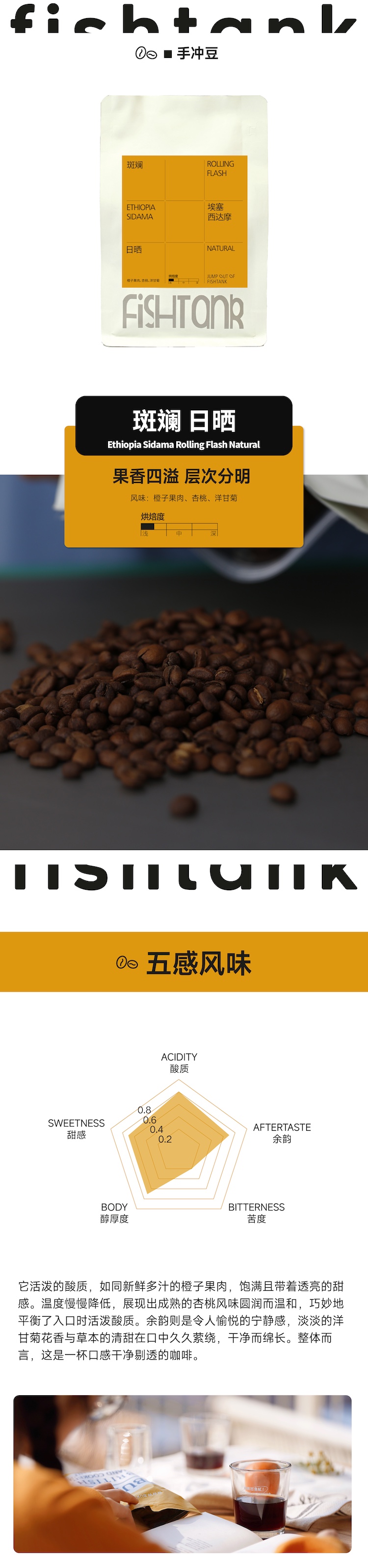 埃塞俄比亚 西达摩 斑斓 日晒 浅烘焙 单品手冲咖啡豆