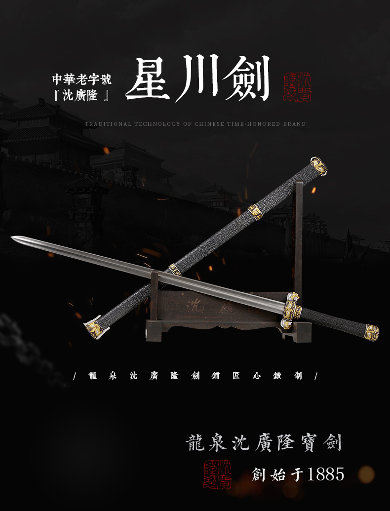 - 龙泉沈广隆剑舖创始于1885年(清光绪)位于浙江省龙泉市,是当地唯一一家“子承父业”一脉相承的中华老字号宝剑生产企业,是国家级非物质文化遗产龙泉宝剑项目保护单位,并以“天下第一剑”闻名于海内外....