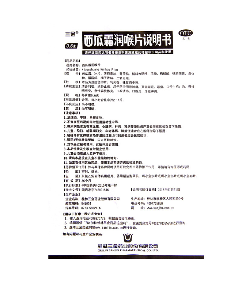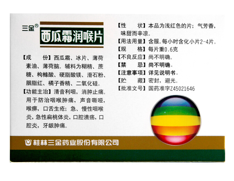 桂林三金西瓜霜润喉片0.6g*36片/盒急 慢性咽炎口腔溃疡声音嘶哑