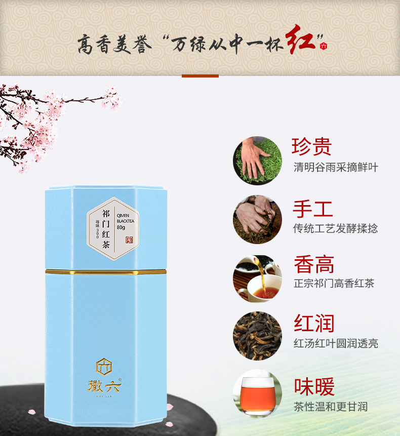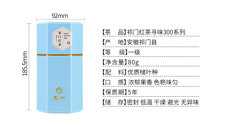 徽六祁门红茶一级寻味300系列红茶80g经典浓香型红香螺茶叶