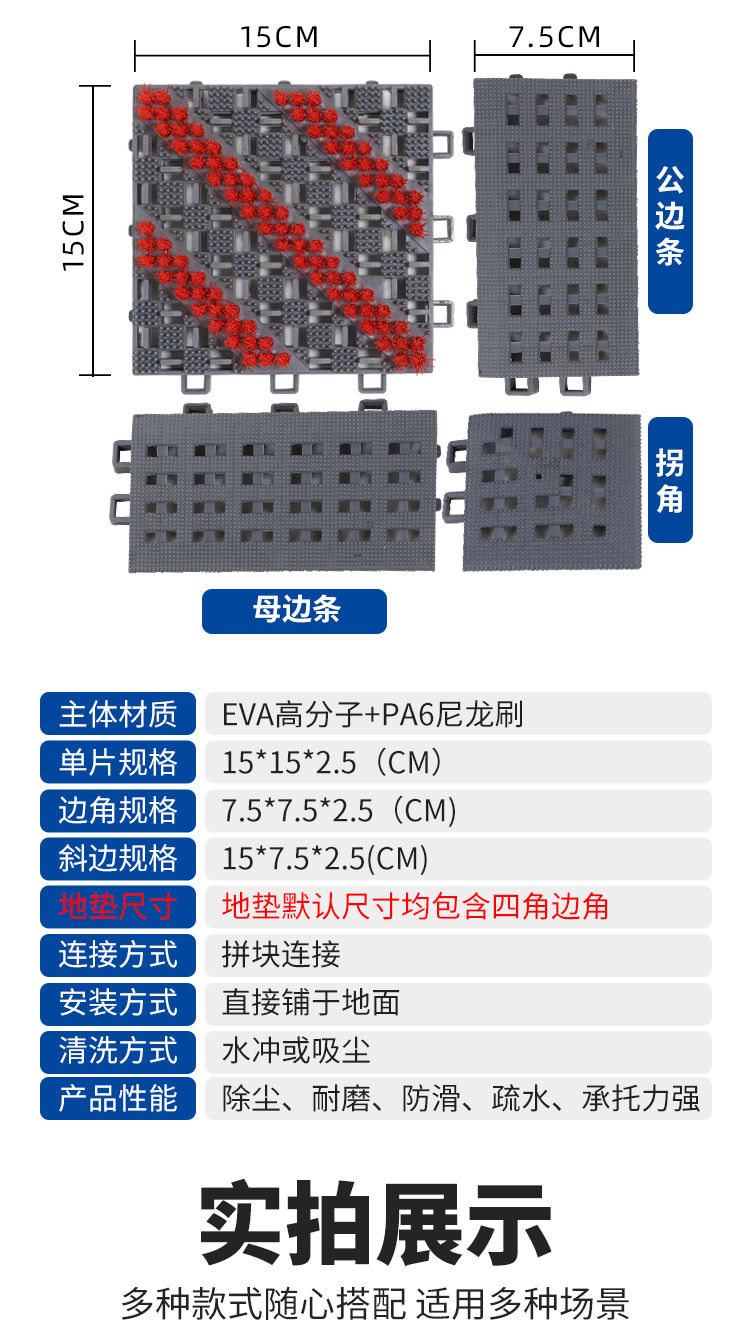 家用入户门地垫门口进门塑料防滑垫门外拼接地毯室外防水镂空脚垫