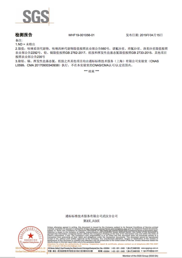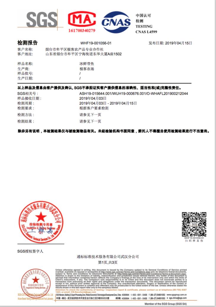 我们将带鱼送去了SGS,做了下检测。结果都符合国家抽检标准。结果如下: