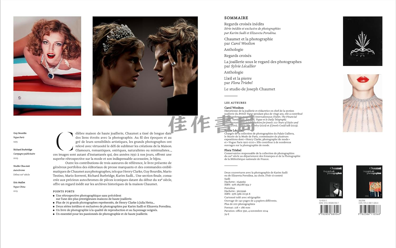 Ce livre présente de généreux portfolios des éditoriaux de presse marquants et des commandes emblématiques de Chaumet aux photographes, tels que Henry Clarke, Guy Bourdin, Mario Testino, Mario Sorrenti, Richard Burbridge, Karim Sadli ... Une section finale, consacrée aux précieux autochromes de pièces iconiques dantant du début du XXe siècle, offre un regard inédit sur les archives historiques de la maison Chaumet.