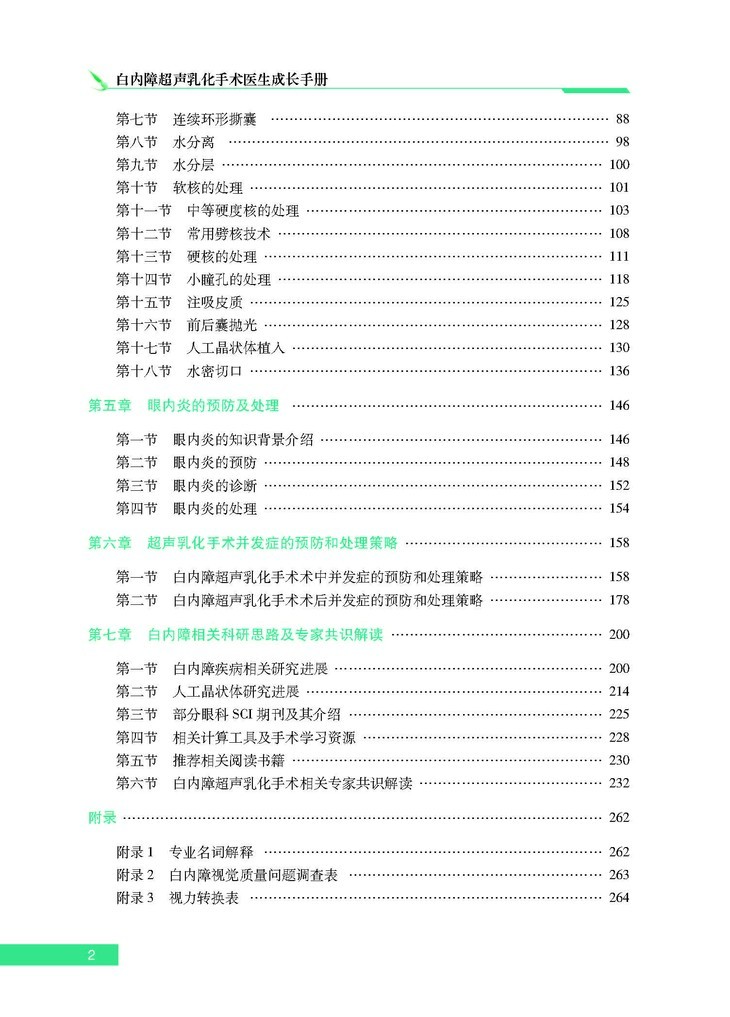 本书旨在通过精炼地讲解术前、术中、术后术者应该注意的各种情况及手术 视频展示,帮助读者在相对较短的时间内掌握白内障超声乳化这门手术技术,缩 短手术学习曲线,并努力将各种手术并发症发生率降到最低。同时,本书的最后 一个章节是白内障疾病及手术技术相关科研的一些知识分享,旨在帮助学习者可 以将研究思路贯穿在学习手术及临床工作的各个方面,形成 “发现临床问题—— 科学研究解决——研究结果应用于临床工作中”的良性及更为长远的发展模式。 需要说明的是,本书撰写参考大量的国内外相关专业书籍及文献资料,但在 撰写过程中由于知识的不断更新,难免出现疏漏及不足,还望读者批评指正。尽 管如此,本书仍不失为一本为成长阶段白内障手术医生精炼介绍超声乳化手术的好作品,希望可以给各位初学超声乳化手术眼科同行的临床工作带来帮助。