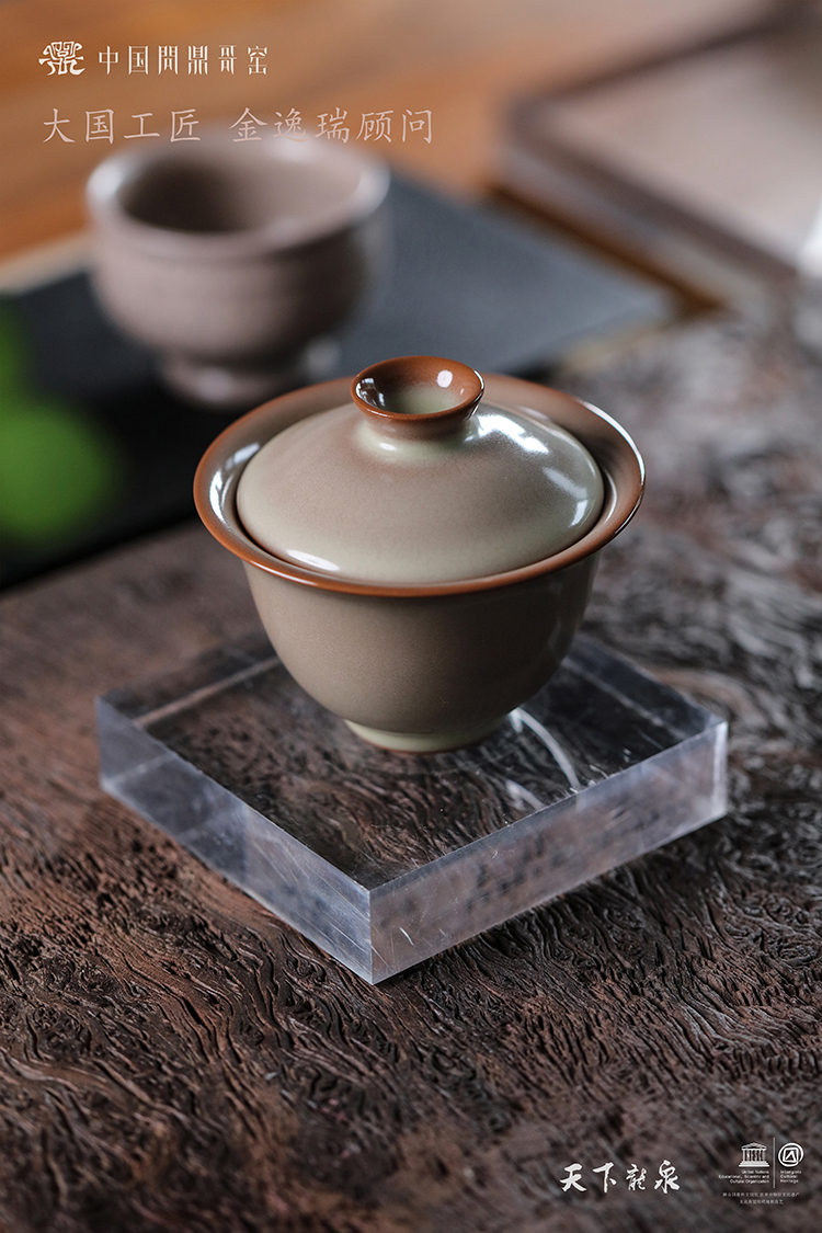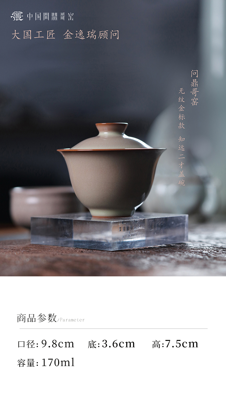 问鼎哥窑无纹金标款知远二才盖碗