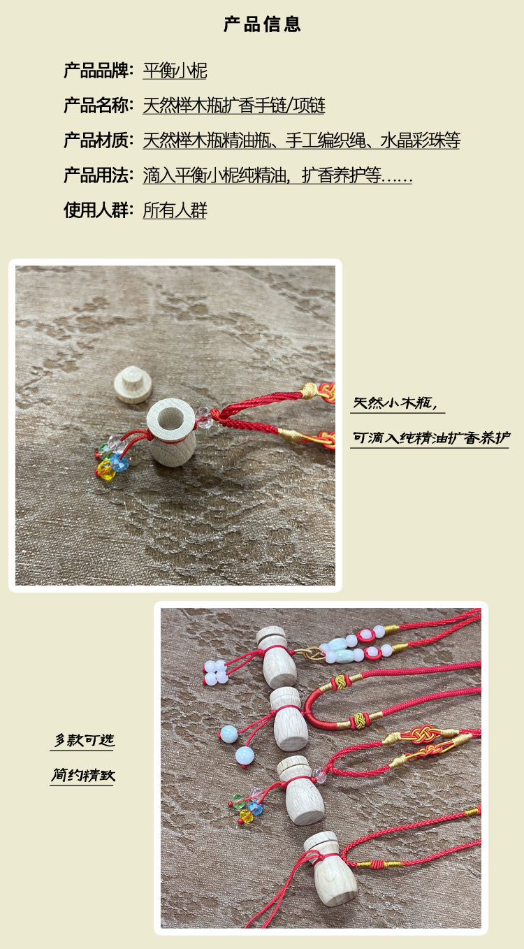 平衡小柅 天然榉木瓶扩香手链/项链 自然扩香 芳香养护