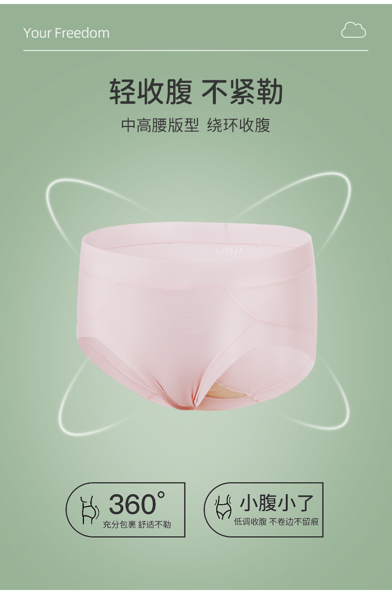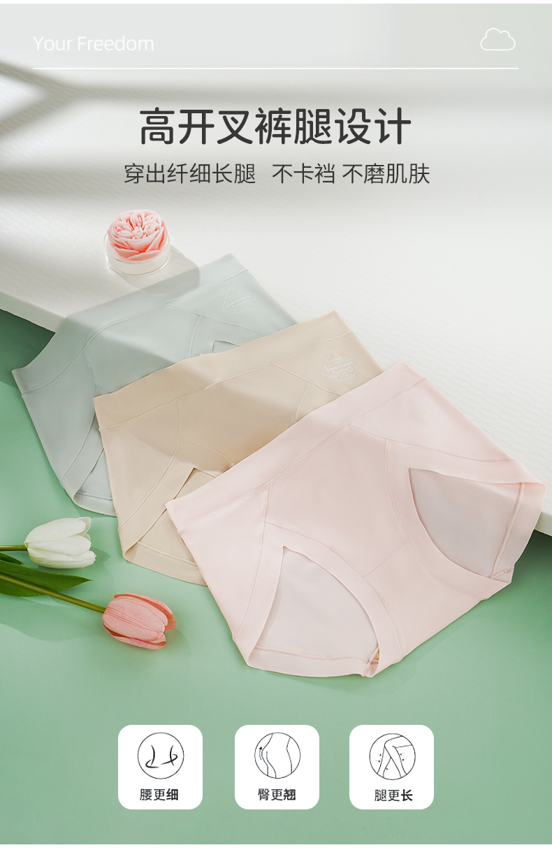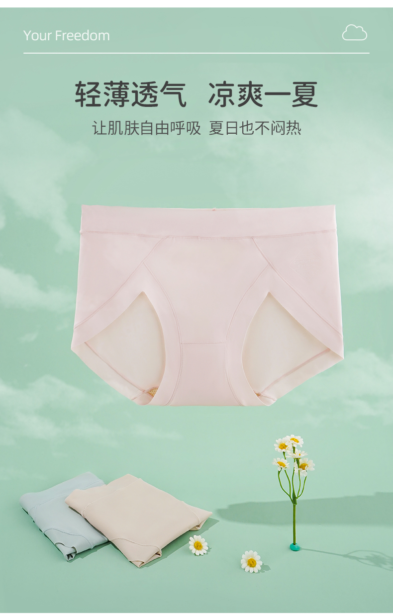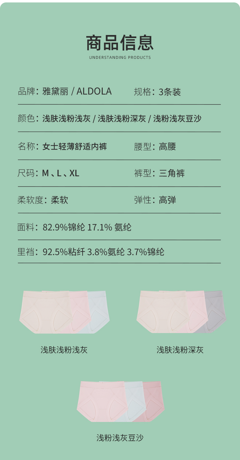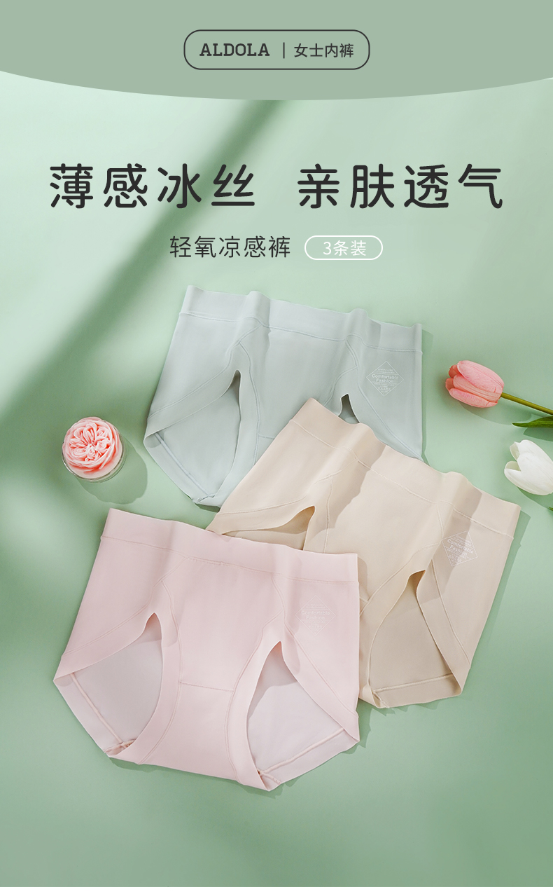雅黛丽夏季凉感轻薄高腰内裤女透气柔软微收腹内裤3条装