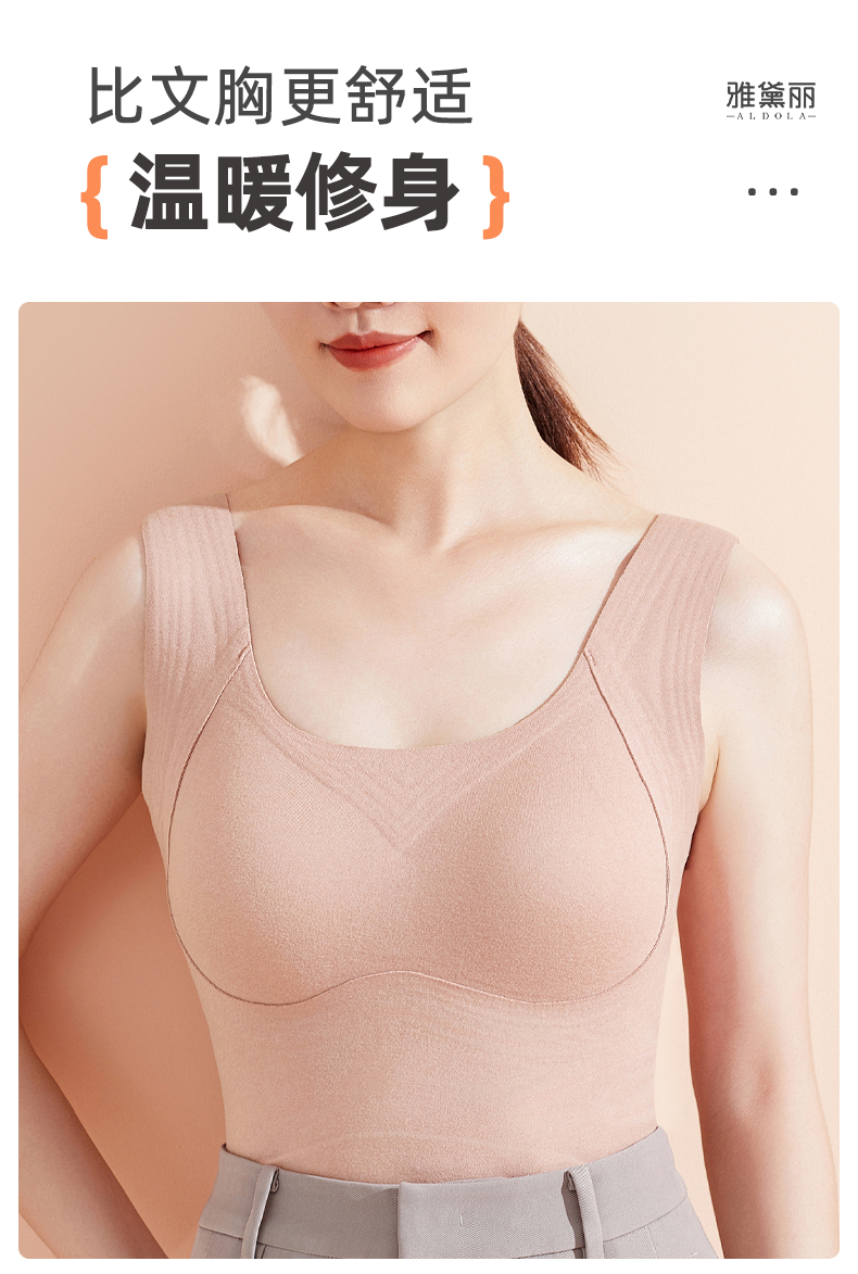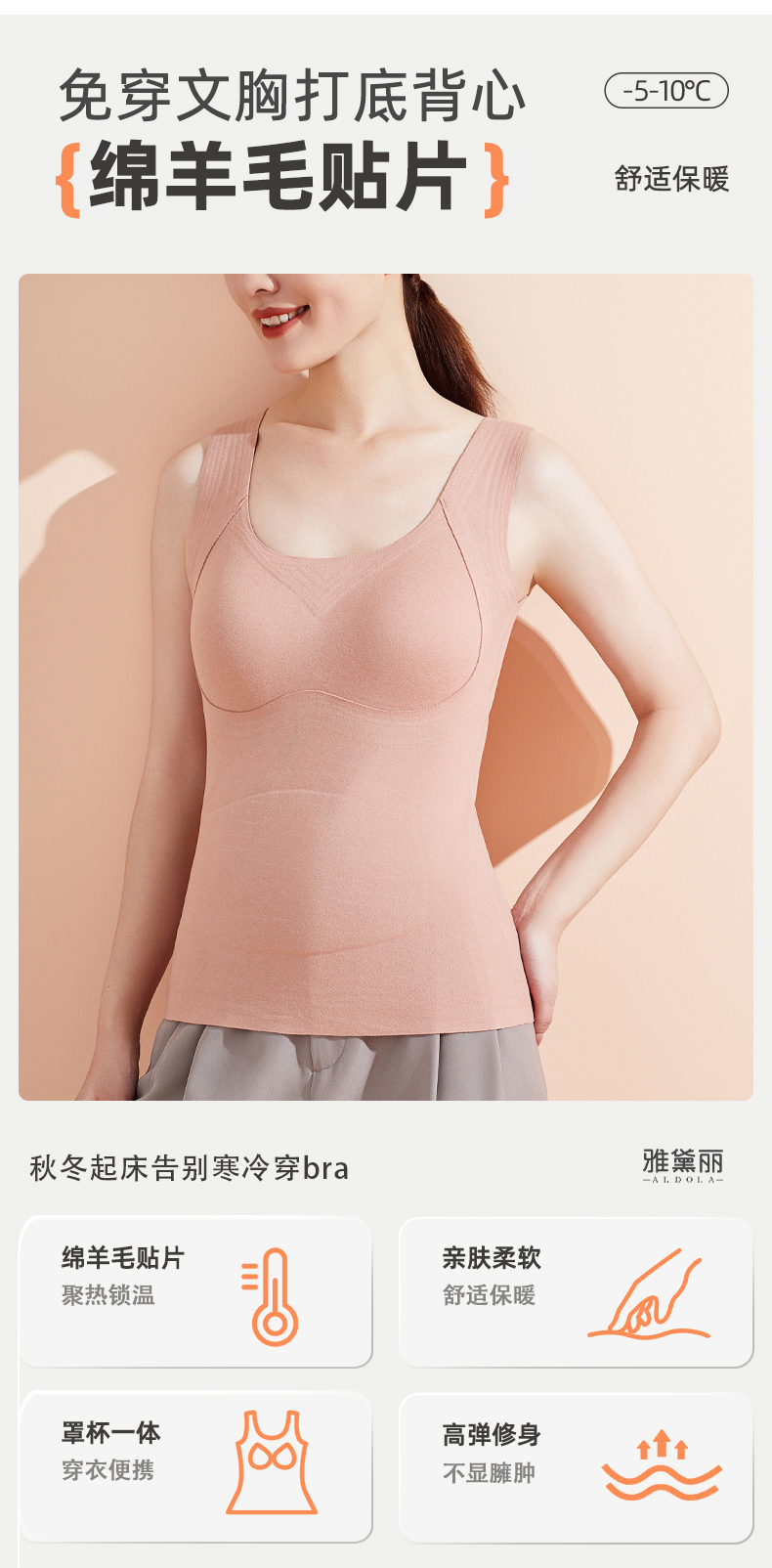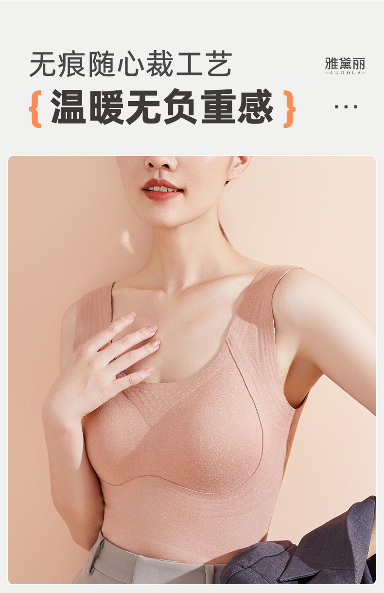 雅黛丽保暖背心女款免穿文胸2024新款秋冬含绵羊毛夹层填充打底衫