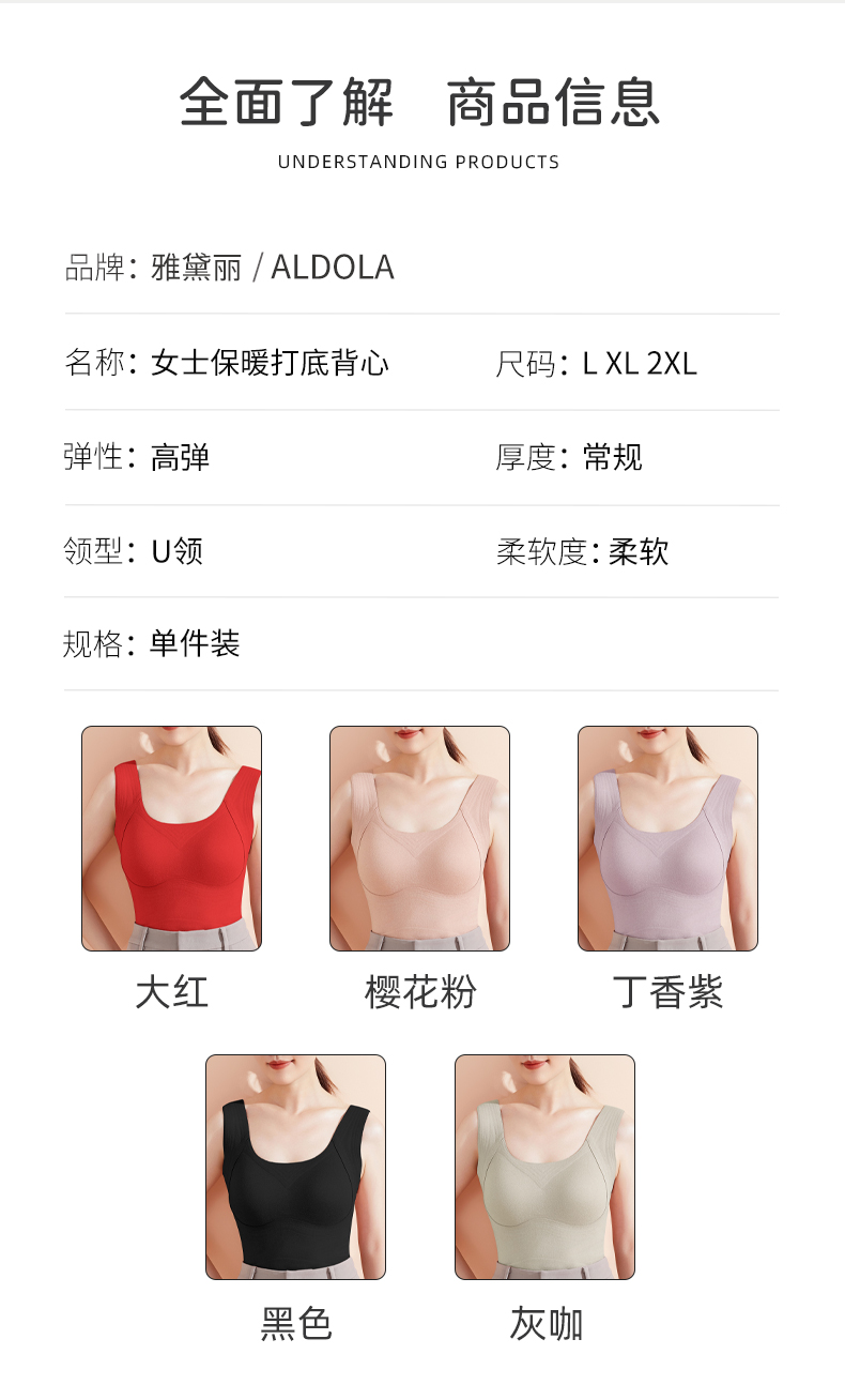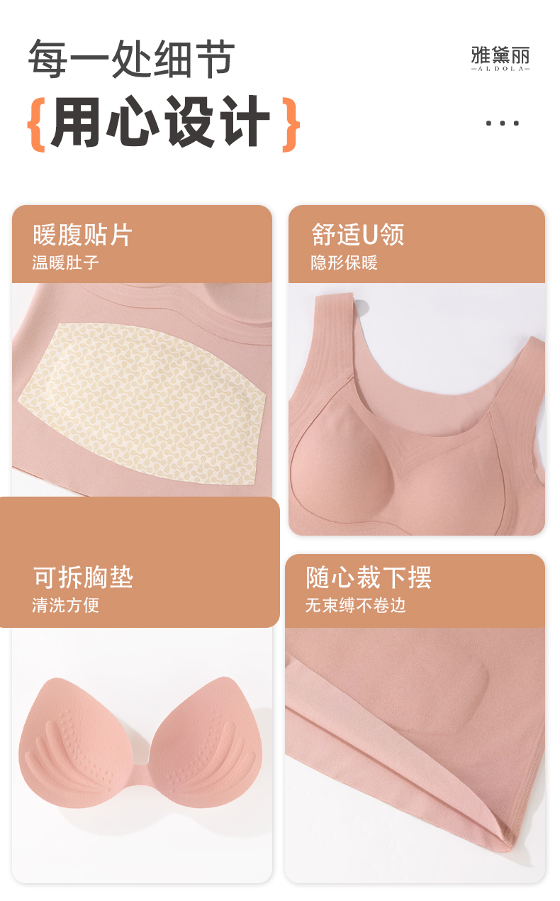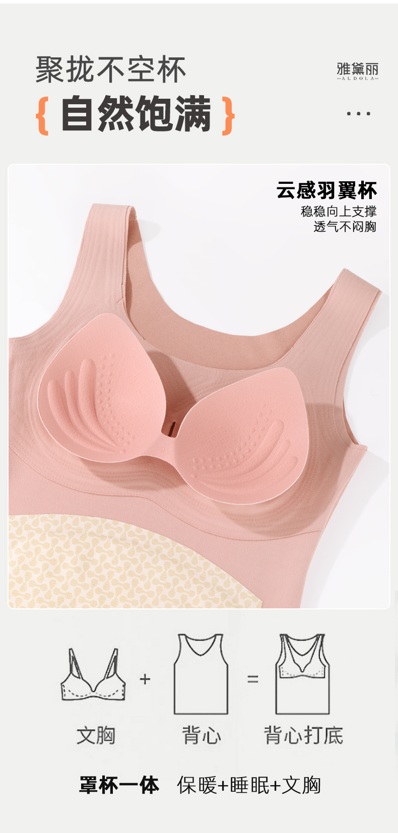雅黛丽保暖背心女款免穿文胸2024新款秋冬含绵羊毛夹层填充打底衫