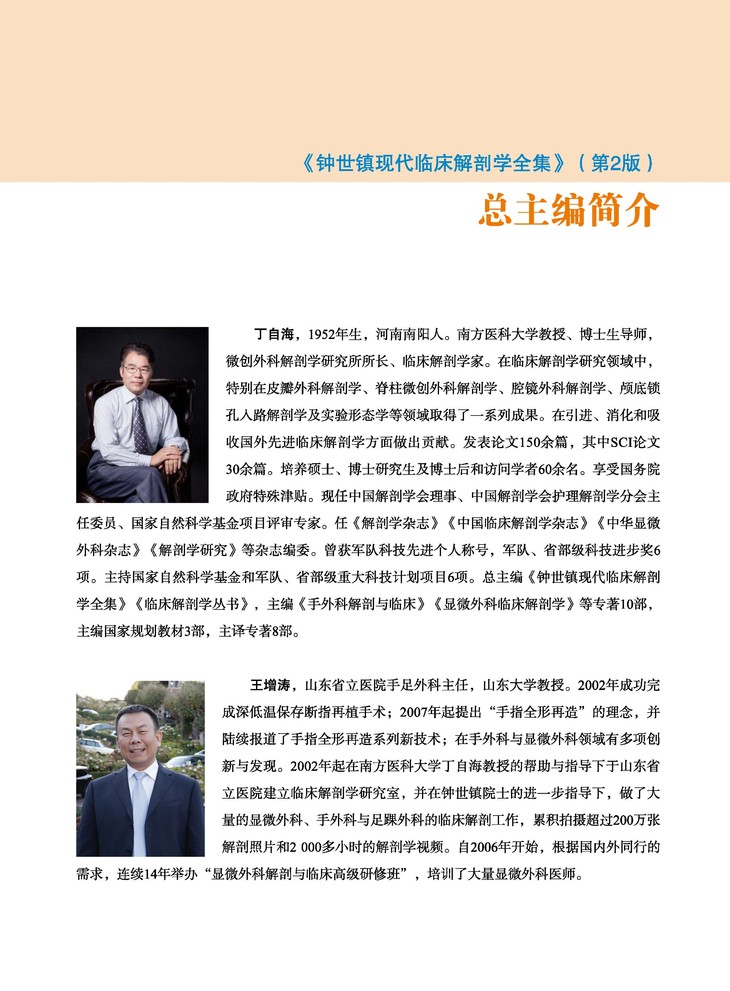 本书共24章,从脊柱的发生、生物力学、正反面标志到椎骨和骨连结,都进行了详细阐述。对颈、胸、腰、骶部均按骨性结构、软组织、手术方法顺序描述。既有已成熟的脊柱解剖学知识,也有近10年来国内外该领域的最新进展,这样可使读者对脊柱及相关结构产生全面认识。新版本有标本图、影像图和手绘线条图,全书图文并茂,更具可读性。