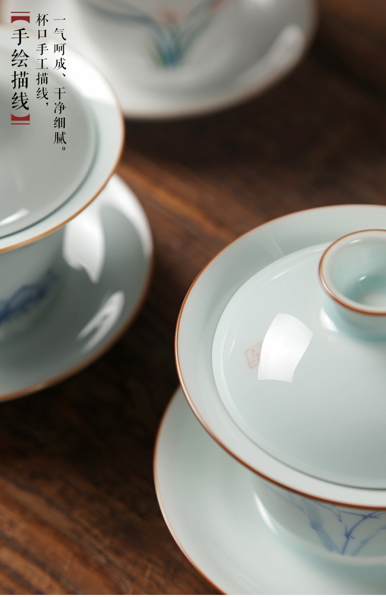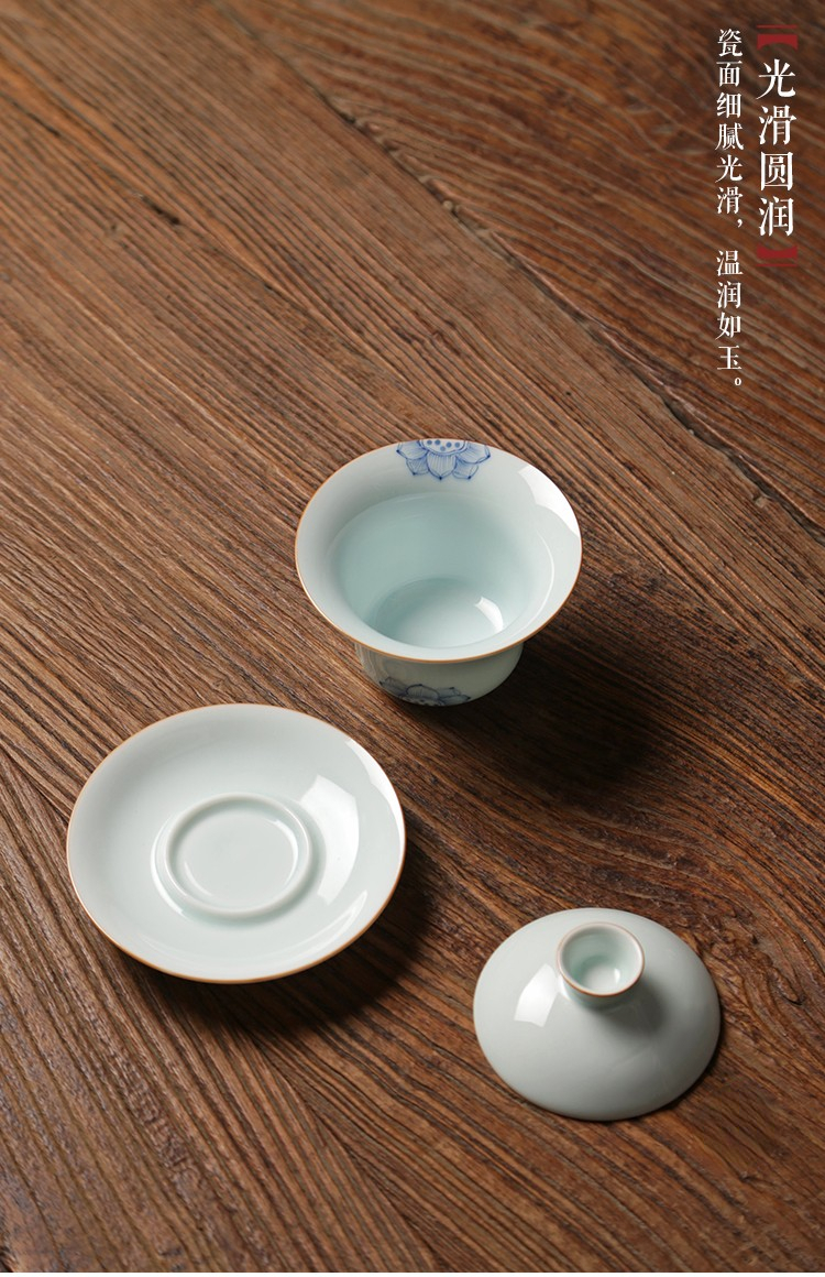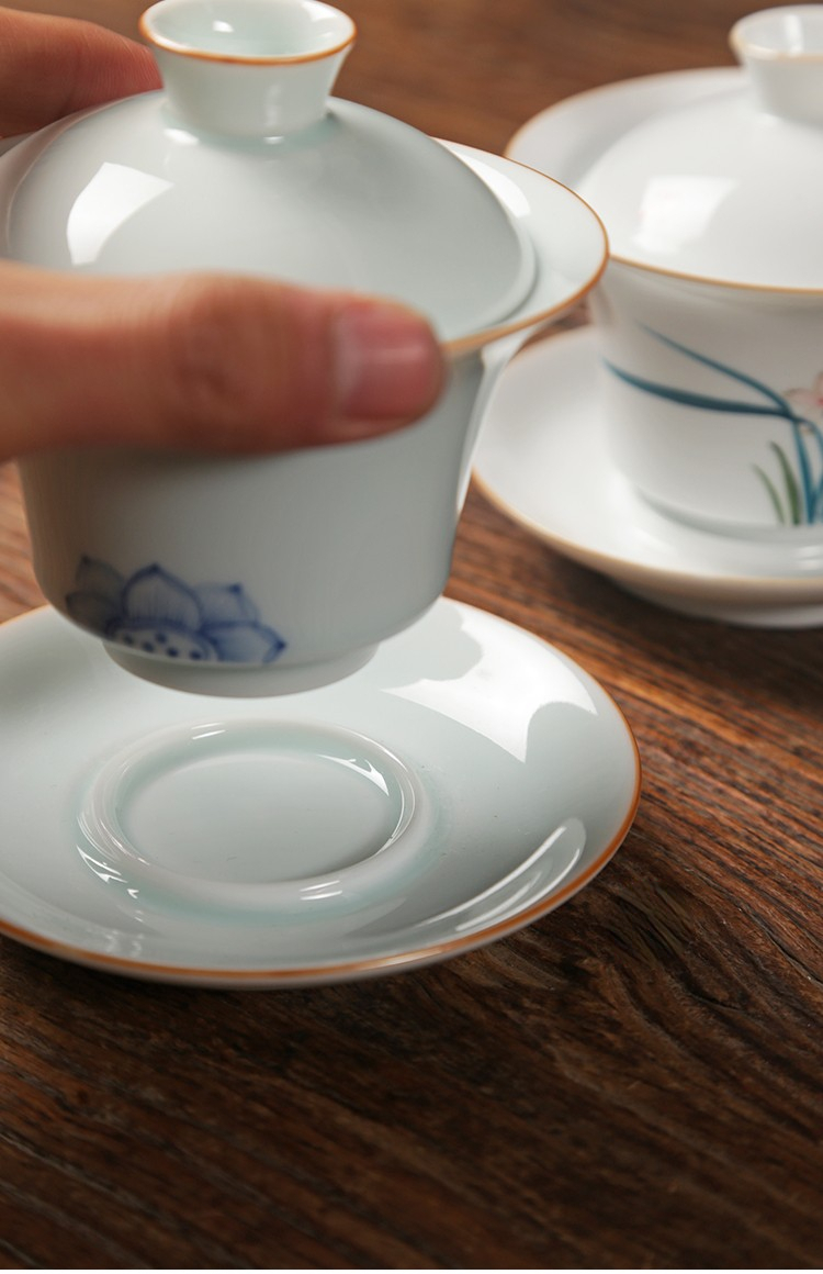 永利汇盖碗茶杯陶瓷功夫茶具三才杯景德镇泡茶器敬茶碗手抓茶壶