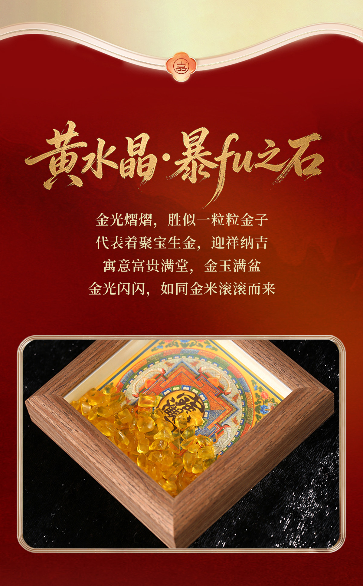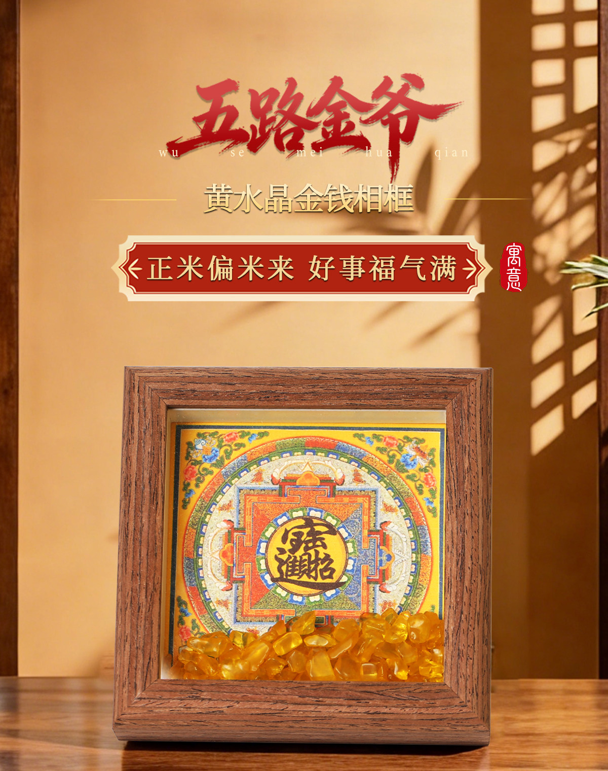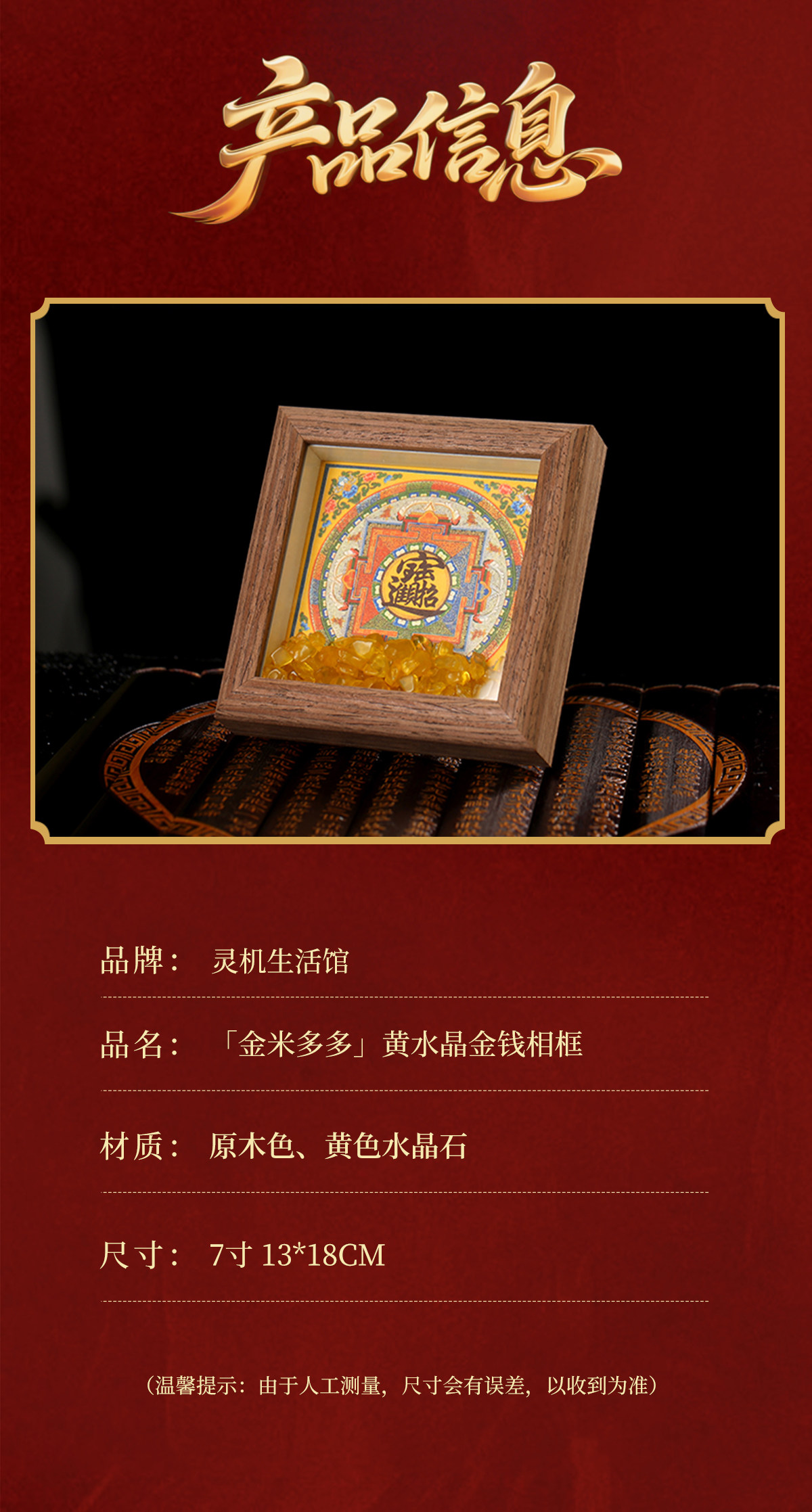 【祈愿吉品】「金米多多」黄水晶金钱相框摆件财神幸运物家居办公室