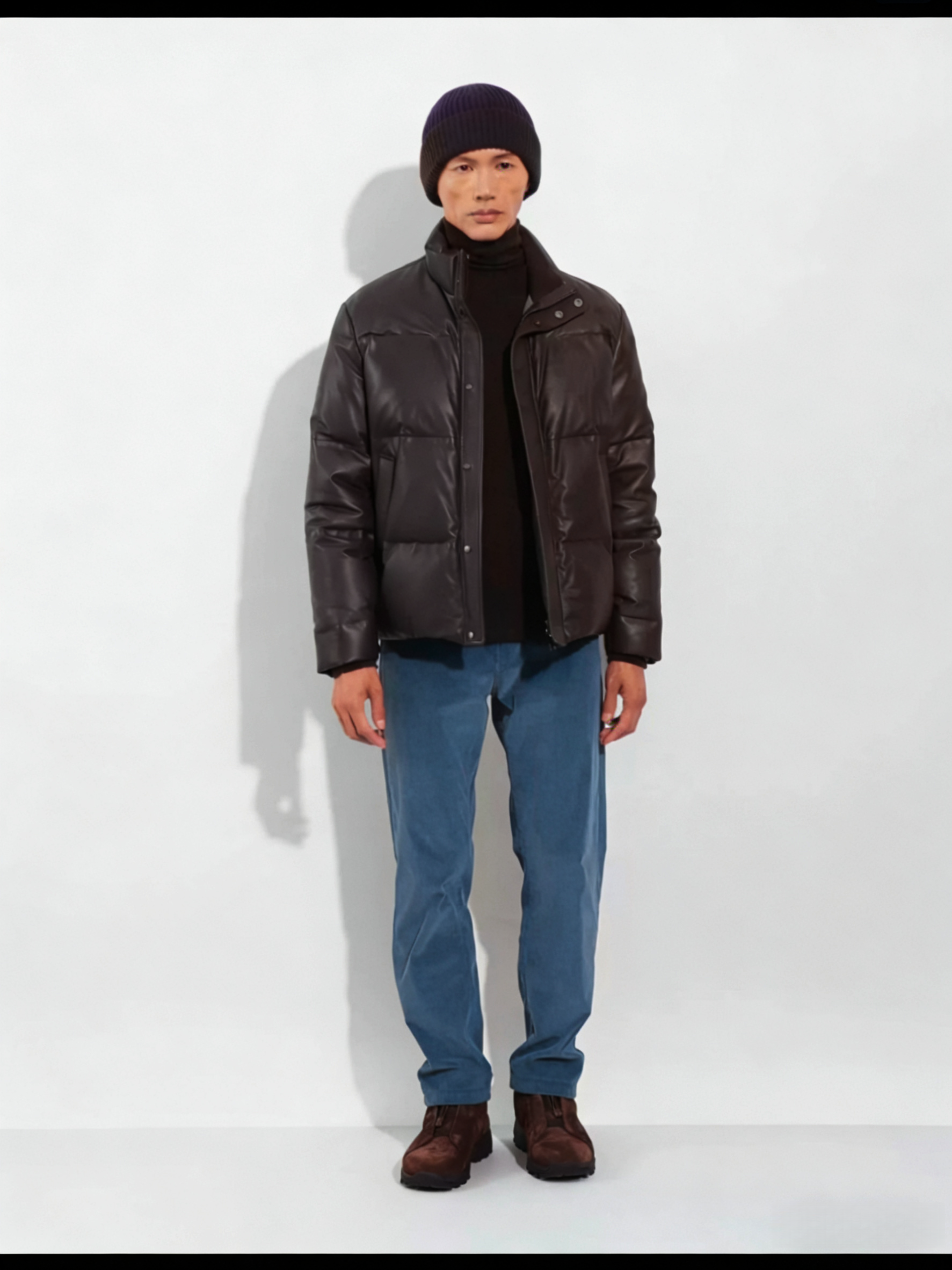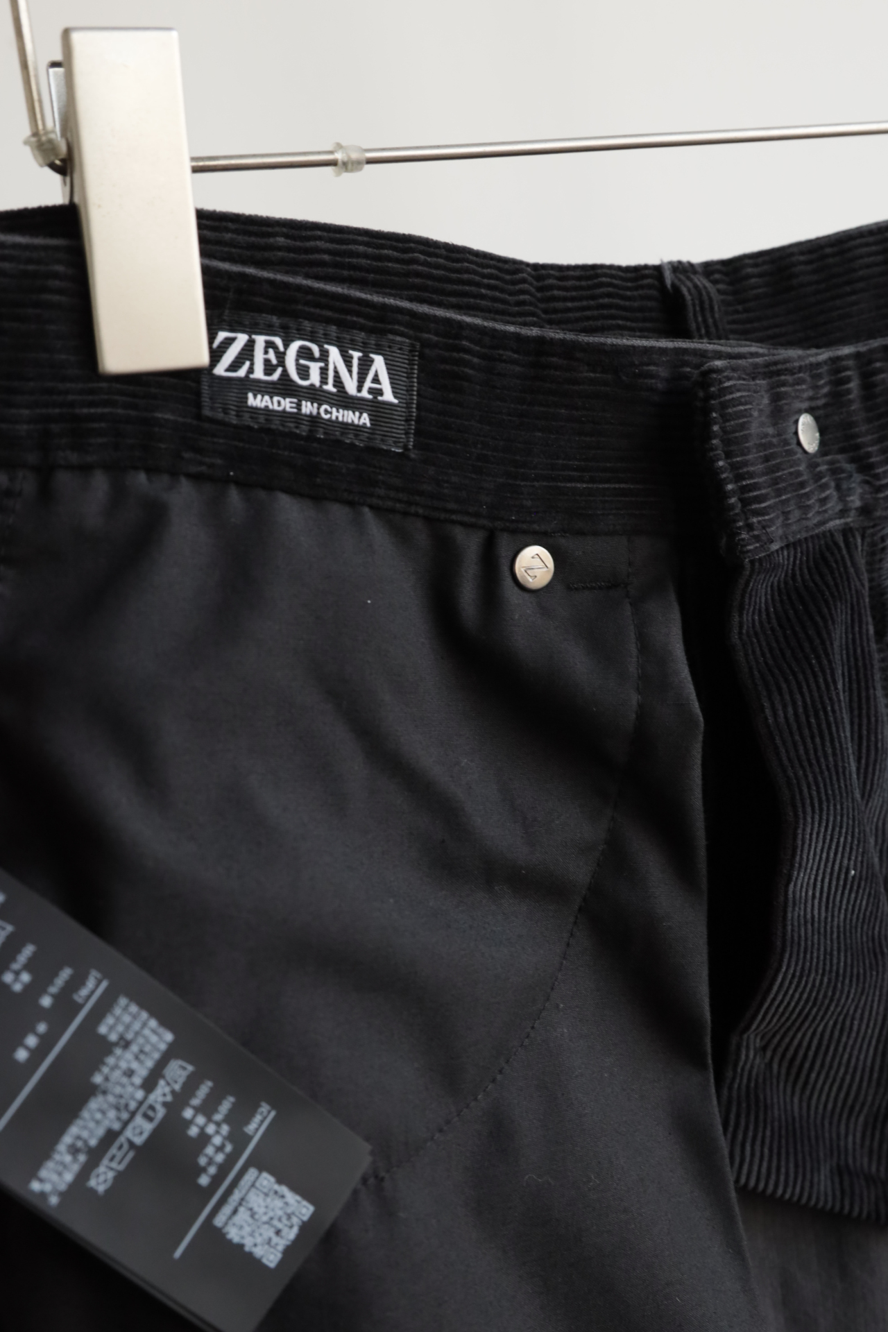 商务休闲简约纯色风格,拉链门襟,后腰皮质腰牌手工定线