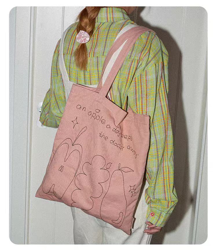 4楼Eubelle欧蓓 puui原创生活春夏大容量单肩手提包 帆布粉色刺绣通勤 活动价:128元