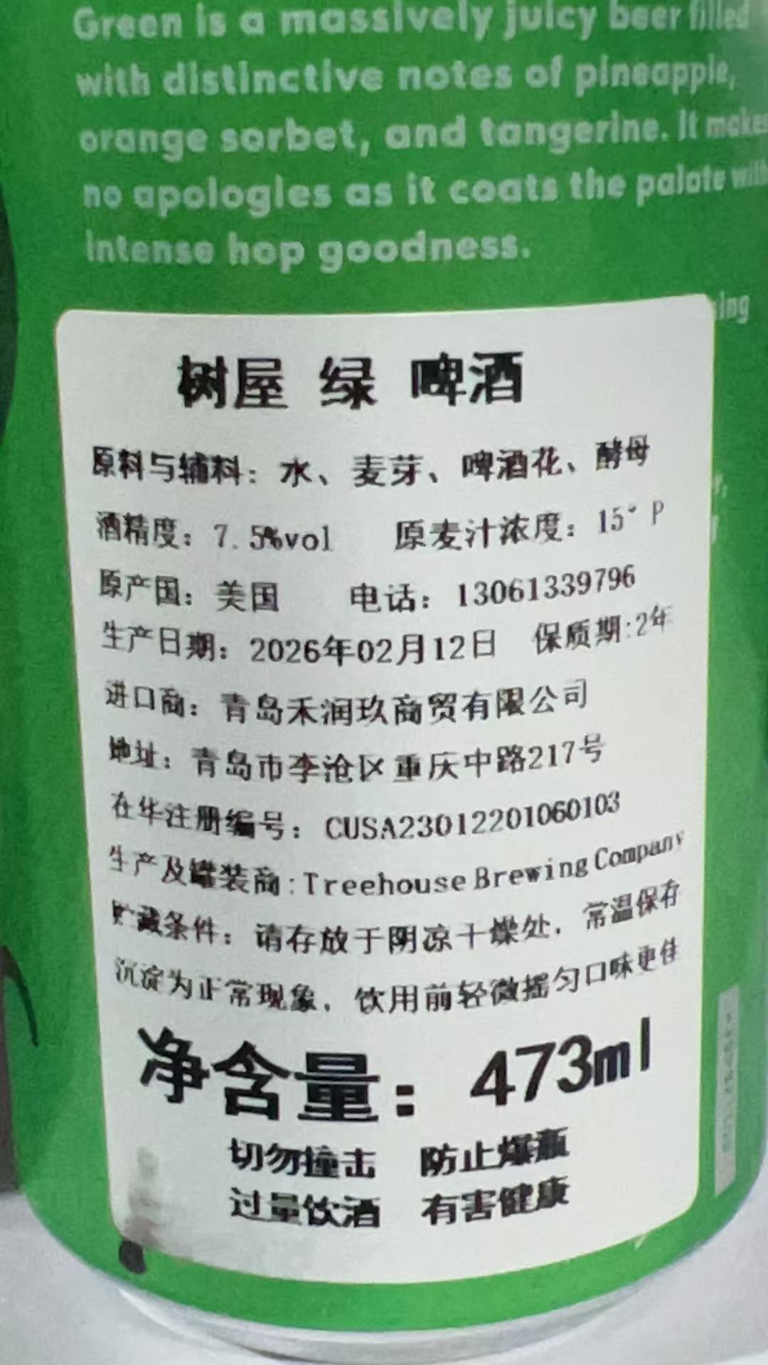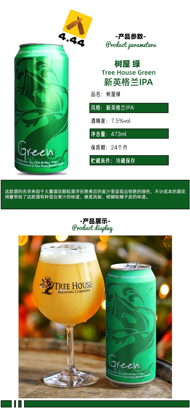 【冷库储存】美国树屋绿新英格兰IPA啤酒 7.5%vol