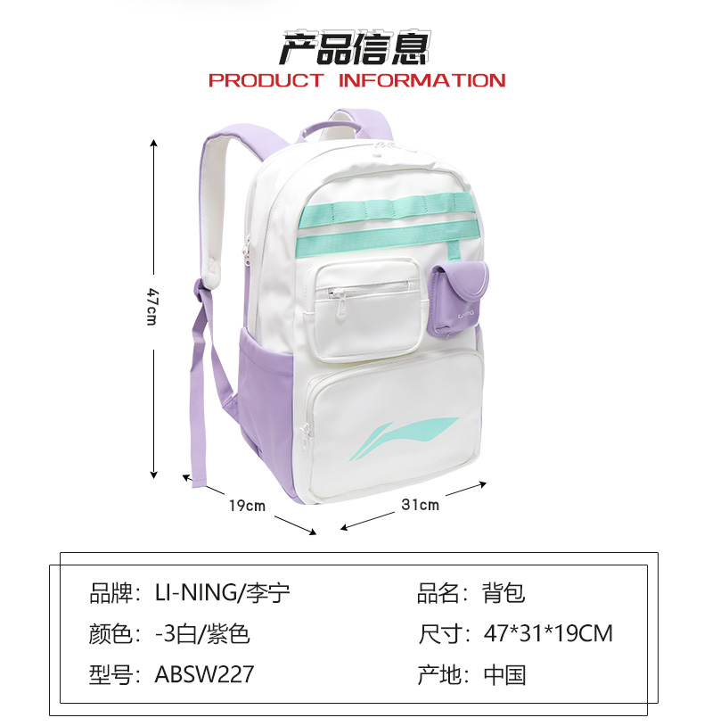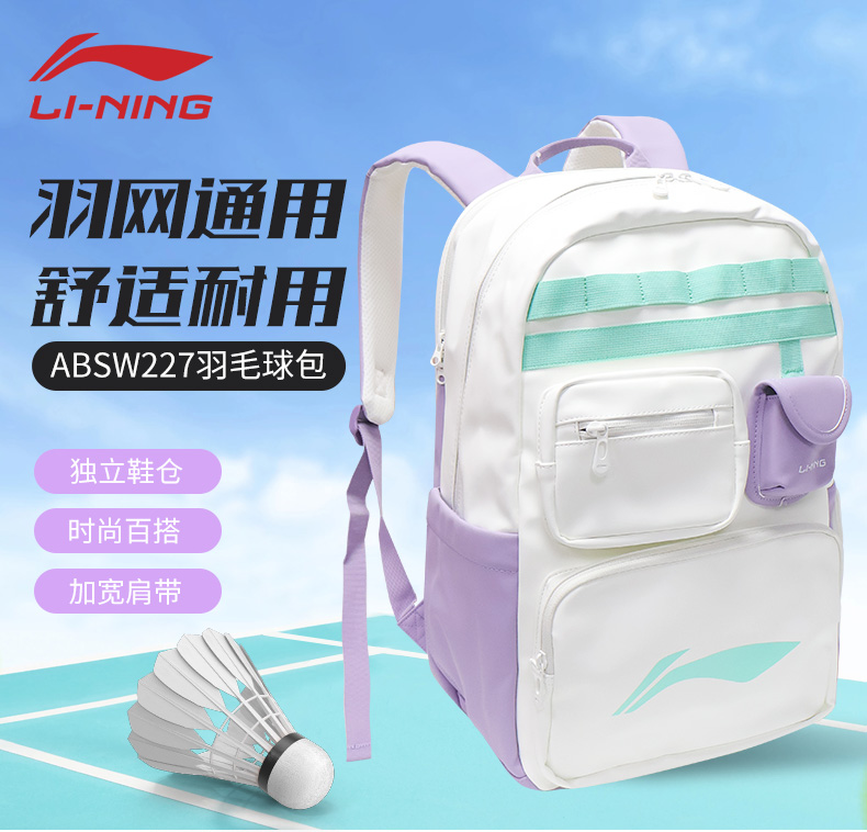李宁羽毛球包ABSW227大容量简约休闲双肩背包