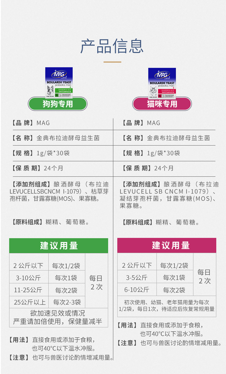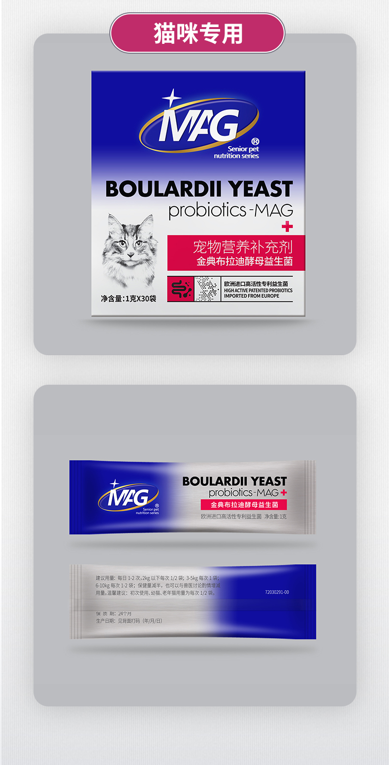 (积分兑换)【MAG U+系列 金典布拉迪酵母益生菌猫用1g*30袋】调理肠胃改善软便调理口臭护肠养胃帮助消化
